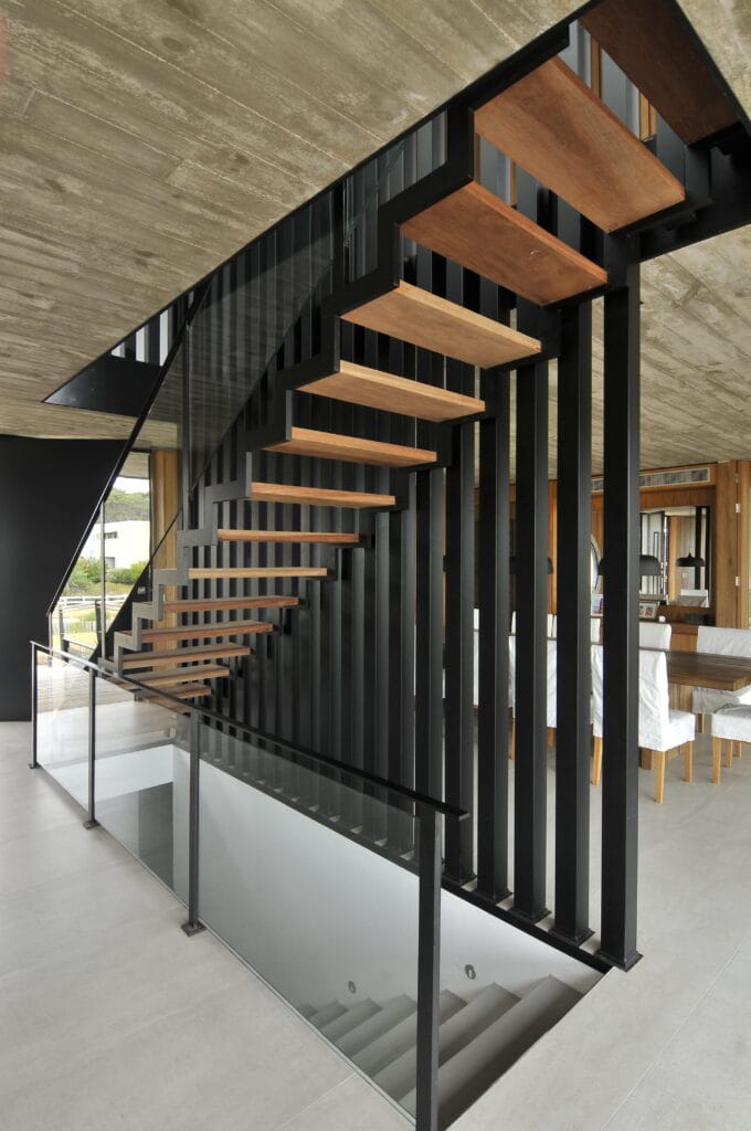 Todos estos aportes componen una casa de varias plantas con espacios de generosas proporciones donde se articulan elementos rígidos que limitan claramente las habitaciones. Por último cabe destacar que el jardín se diseño para que fuera una extensión de la playa, que “penetrara” en la casa.  En la fachada a la ruta en cambio se buscó que la vegetación colaborara como barrera sonora y de privacidad.