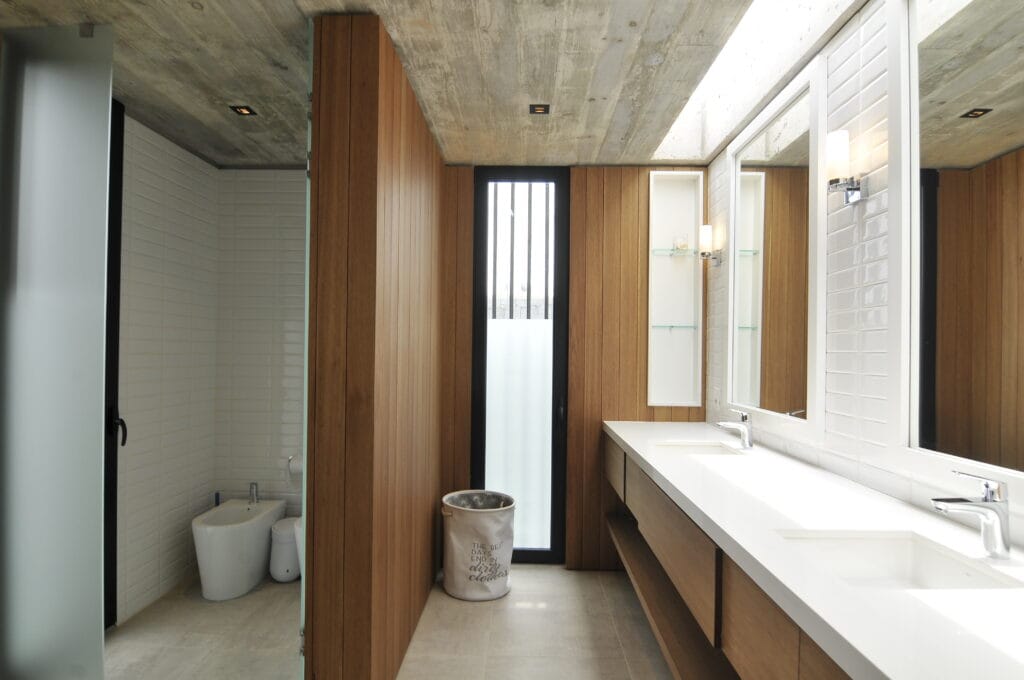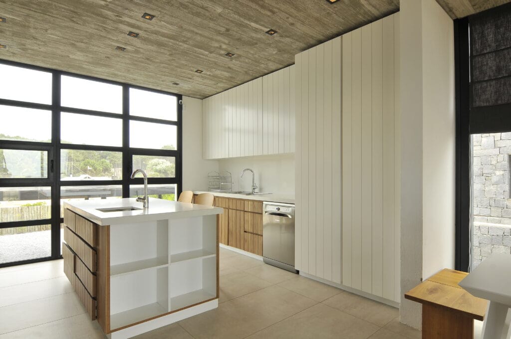 Se prefirió dejar los tonos naturales para los espacios sociales, living, comedor, dormitorio principal, baños y en madera blanca laqueada que aporta reminiscencias náuticas en los dormitorios de los niños.