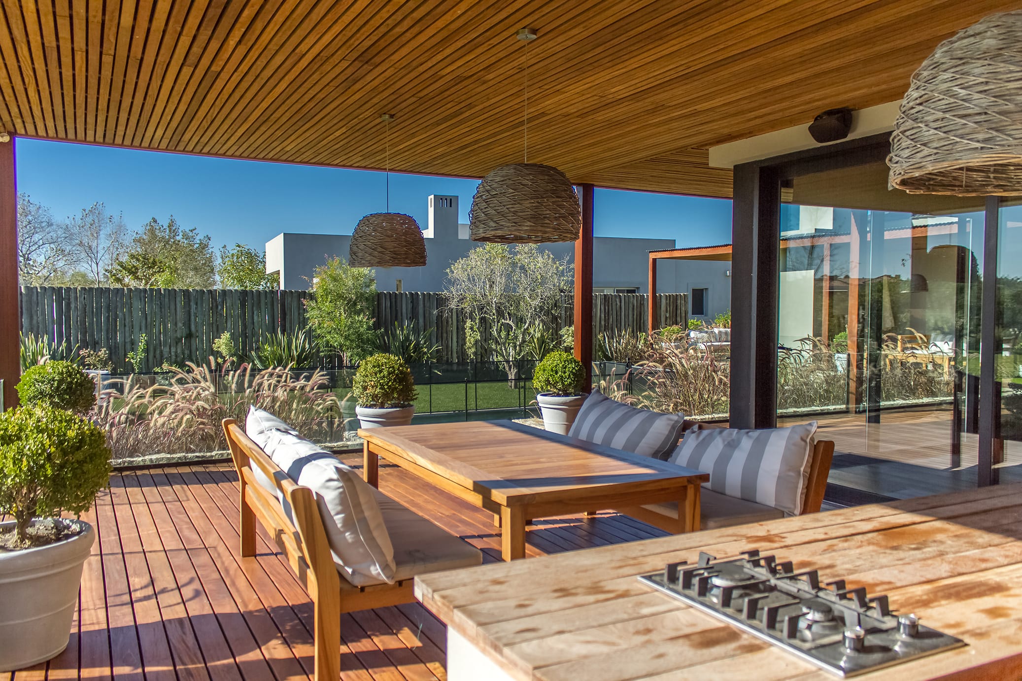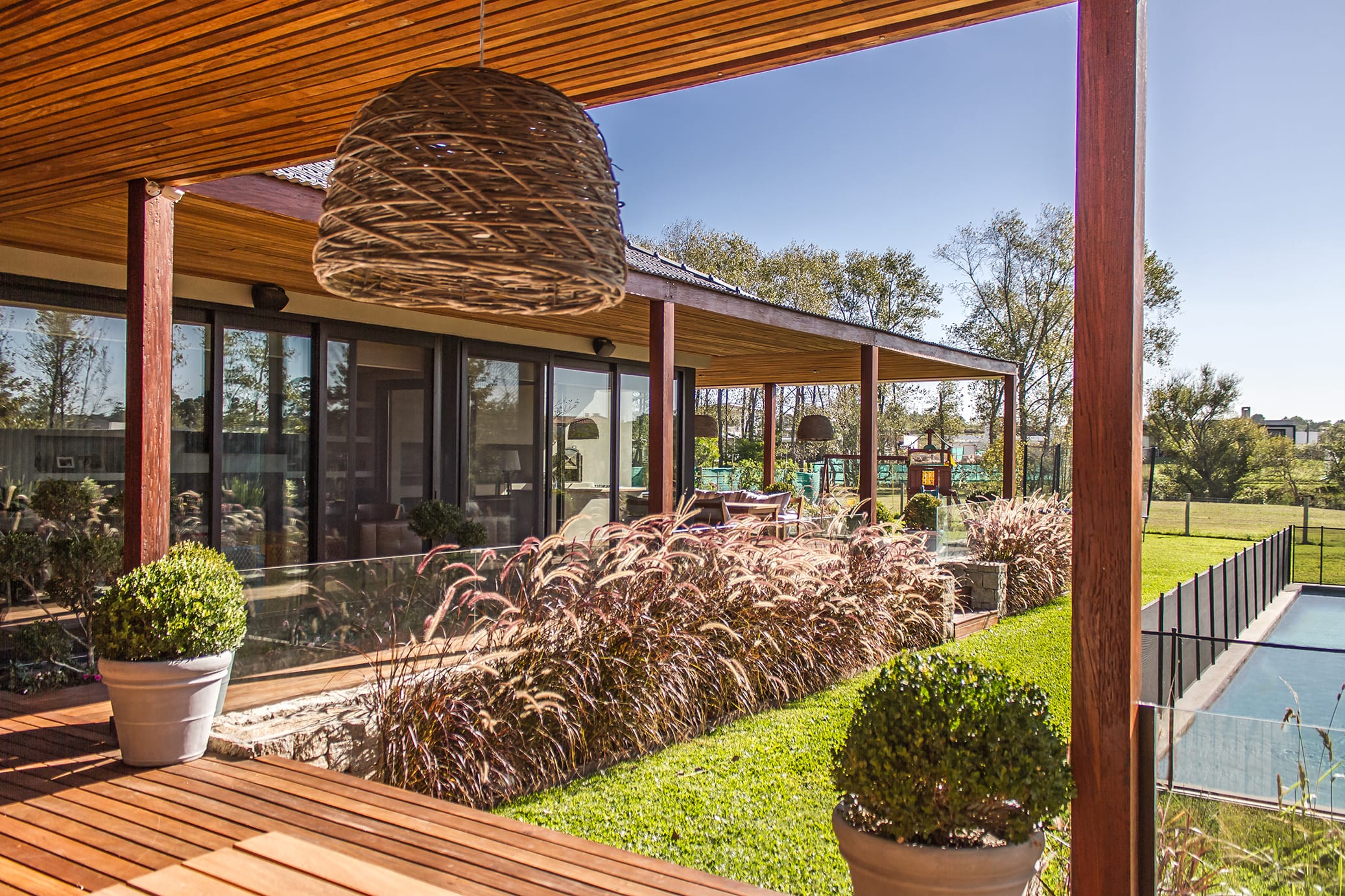 El proyecto es el resultado de un intenso trabajo de investigación con los habitantes y de un exhaustivo análisis del paisaje del lugar, el barrio Viñedos de La Tahona, en Canelones. La estructura urbana de la zona y su fuerte carácter residencial establecieron condicionamientos que determinaron la toma de partido al momento de resolver la implantación y las características formales de la casa.