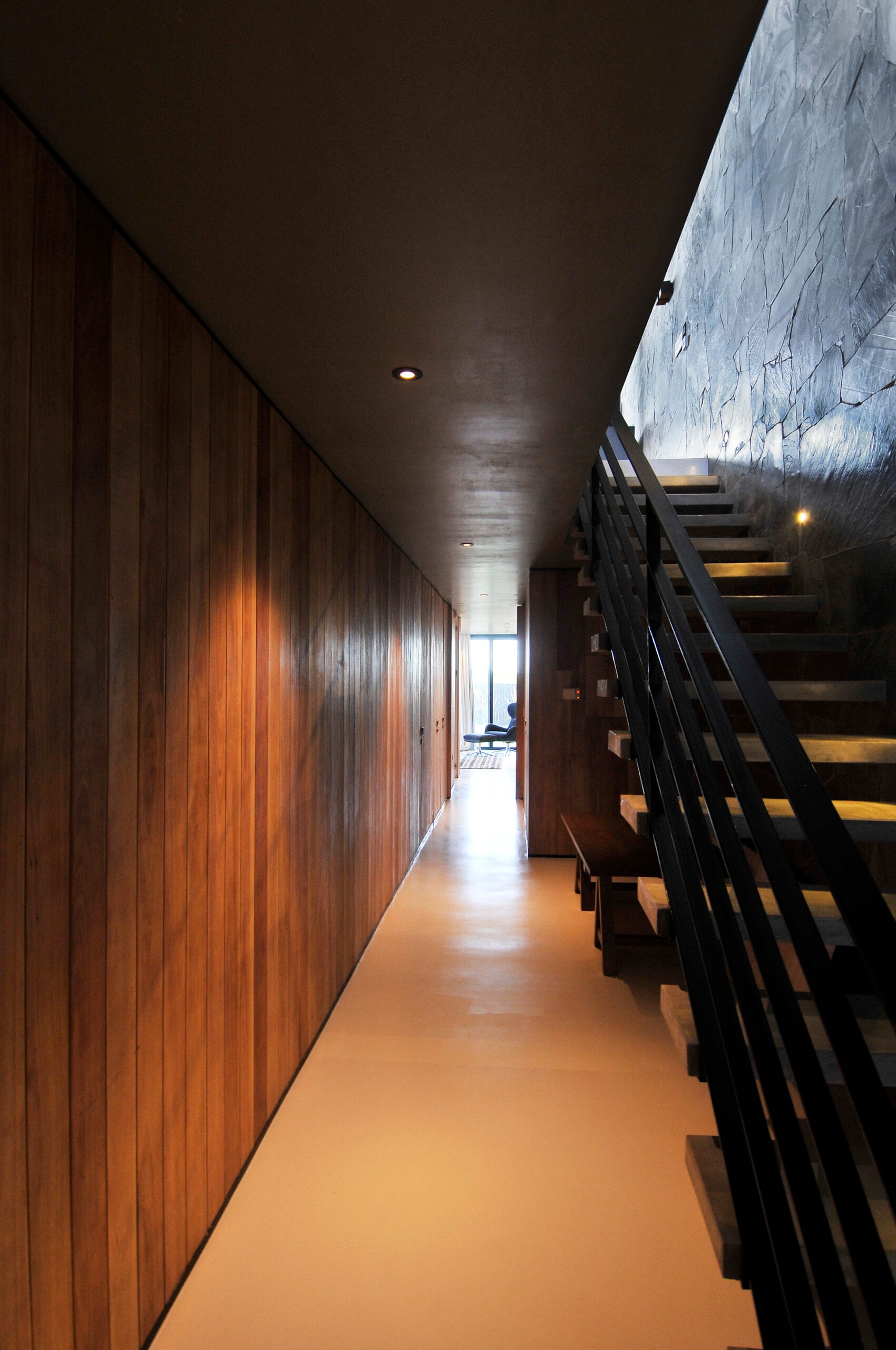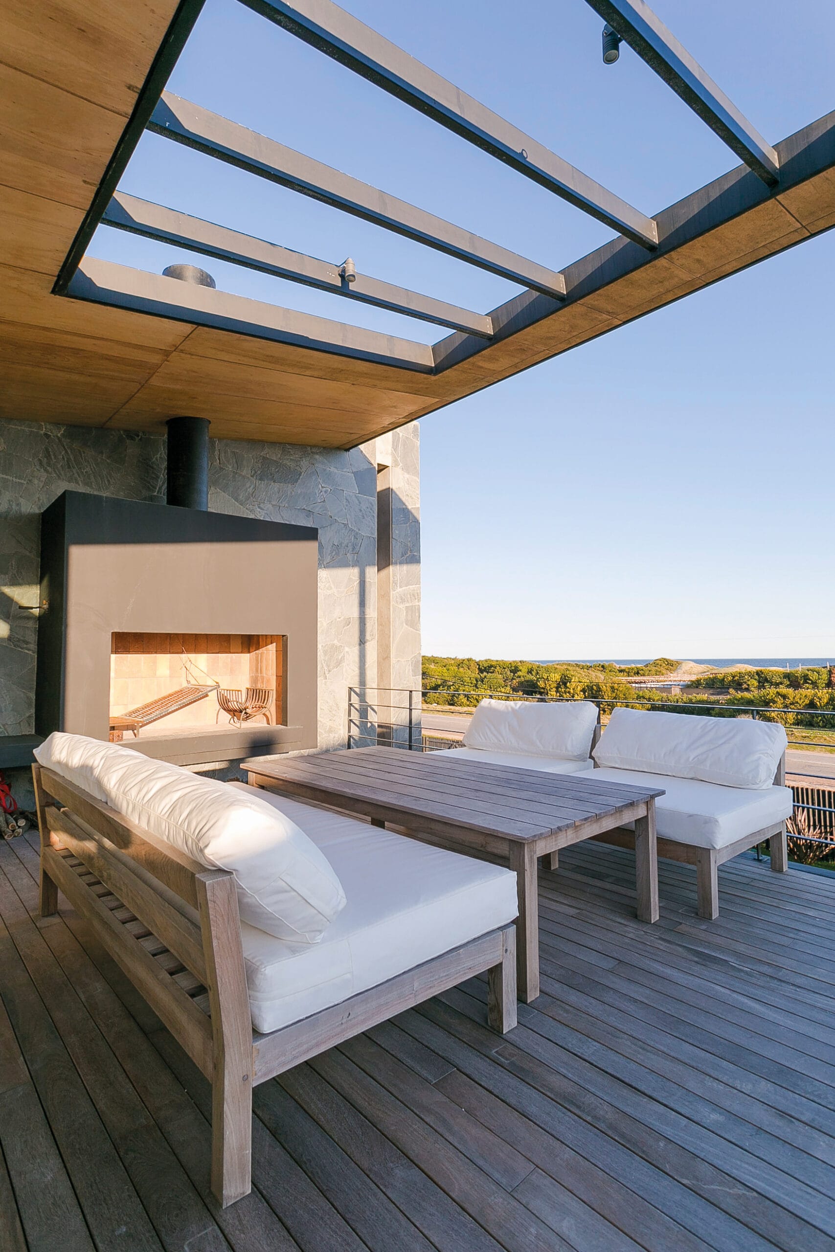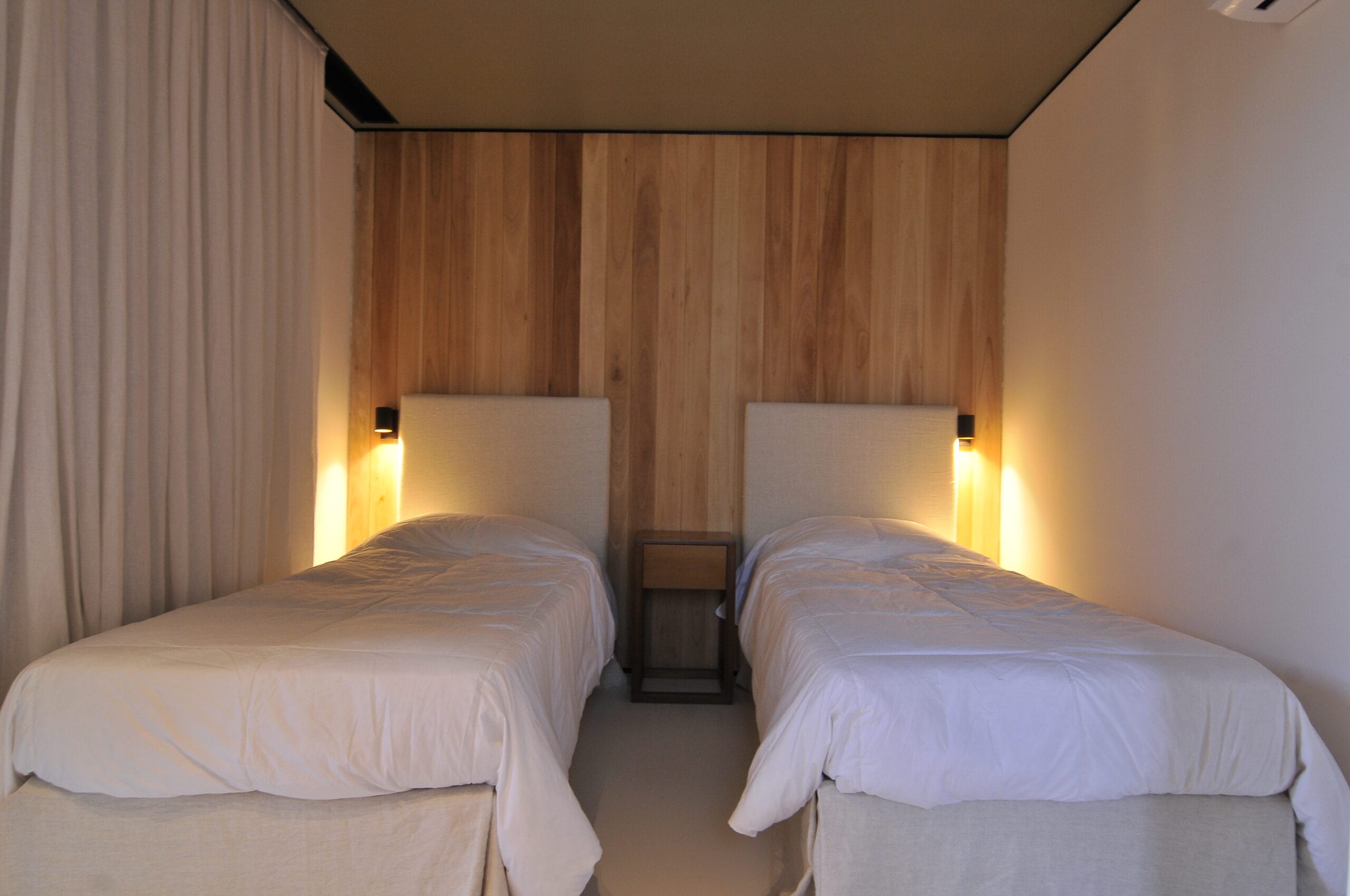 Los livings se ubican en la planta alta mirando hacia el mar, los dormitorios se desarrollan linealmente en toda la planta baja cada uno de ellos con salidas al jardín.