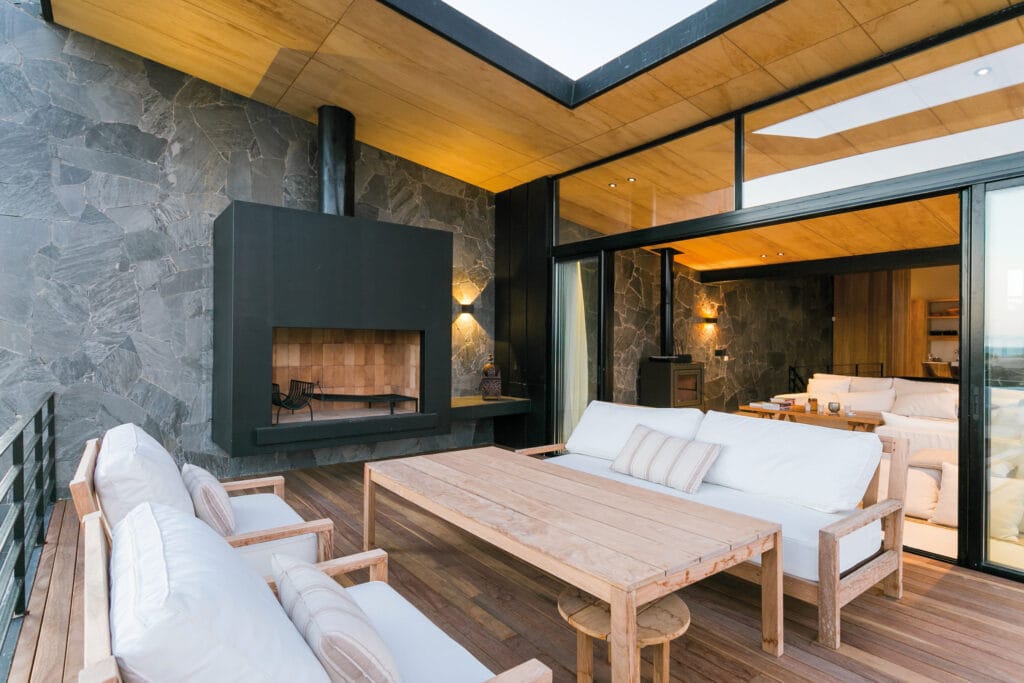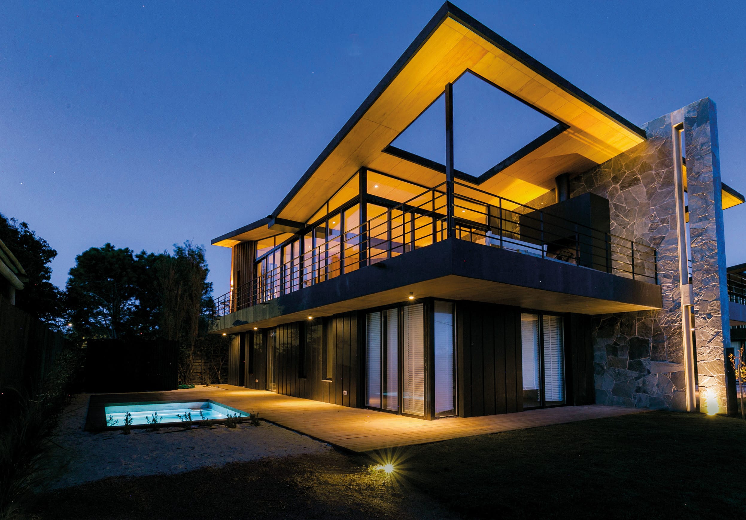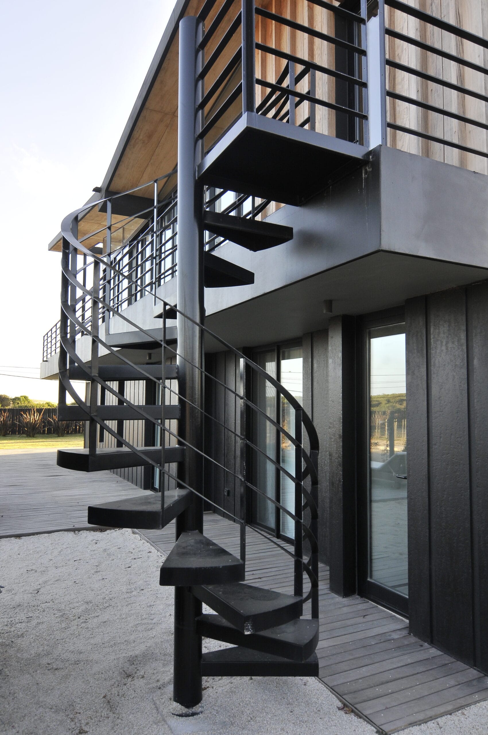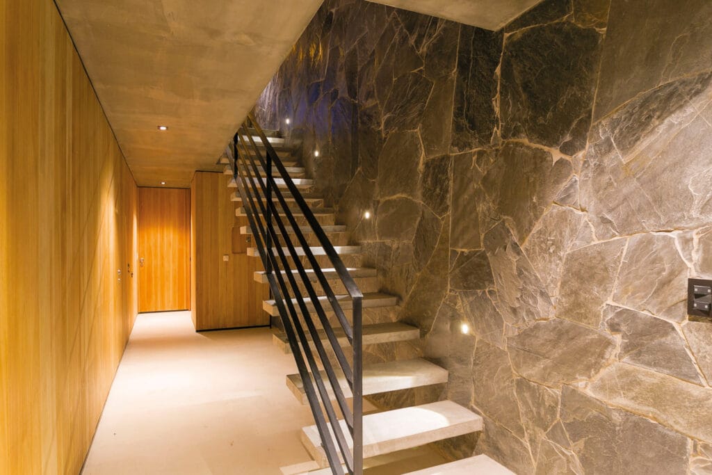 La piedra y la madera son los materiales que conforman las fachadas junto a la estructura en hierro traduciéndose en una elegante combinación de marrón, negro y gris.