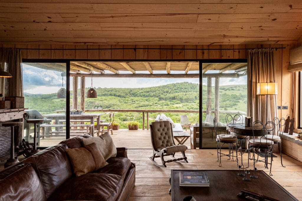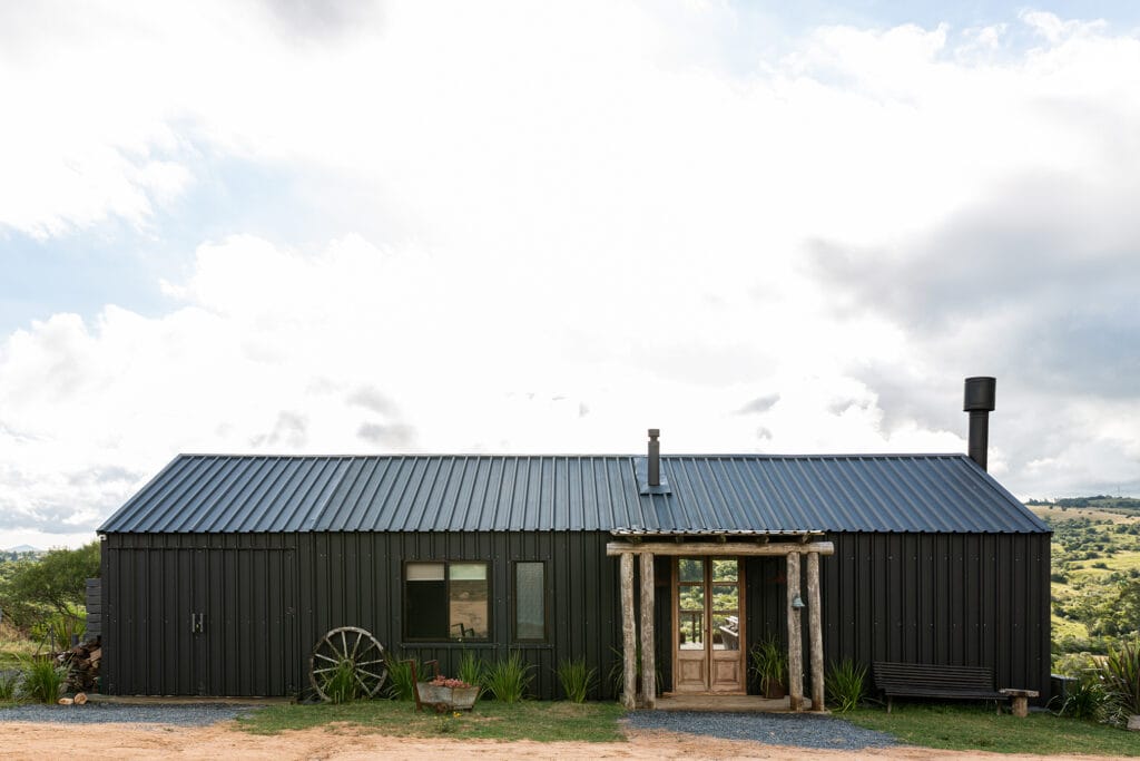 Esta casa, ubicada en Las Sierras de Minas, está implantada en un entorno donde la naturaleza es protagonista. Un gran deck de madera se levanta en el terreno y da lugar a esta casa bastante particular. La estructura de hierro rectangular dividida en tres módulos es abrazada por chapas metálicas y enteramente revestida en su interior en madera. En sus laterales, la casa se muestra en sus caras laterales forma pentagonal y se prolonga en forma escalonada acompañando el movimiento del suelo. En su interior, la casa fue pensada como un espacio que se define a través de la ambientación, el ambiente principal presenta living y comedor contenido por una gran abertura de cristal corredizo que ofrece inmejorables vistas a las sierras.