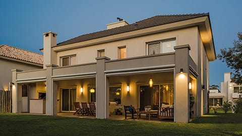 La casa se define a partir de sus ambientes que fueron diseñados como espacios integrables. Todos están orientados hacia el jardín y sus grandes ventanales incorporan el paisaje al ambiente. En esta obra la arquitectura conjuga modernidad e inteligencia. Se trata de una casa en Barrio Parques, que asocia aires contemporáneos, que se relacionan de manera particular con la arquitectura tradicional. Molduras trabajadas recorren la construcción y pautan el carácter de la fachada por medio de la composición en cuanto a la volumetría y el juego de planos superpuestos. La casa consta de dos plantas claramente definidas. La planta baja se concibió teniendo en cuenta las necesidades de la vida moderna, por lo que además del living comedor, estar y cocina, se proyectó un amplio escritorio al frente, cuyo cerramiento de doble hoja permite generar privacidad. En la fachada posterior se destaca una gran galería donde se ubicó el parrillero y conjuga la doble función de ser además una terraza para los dormitorios.