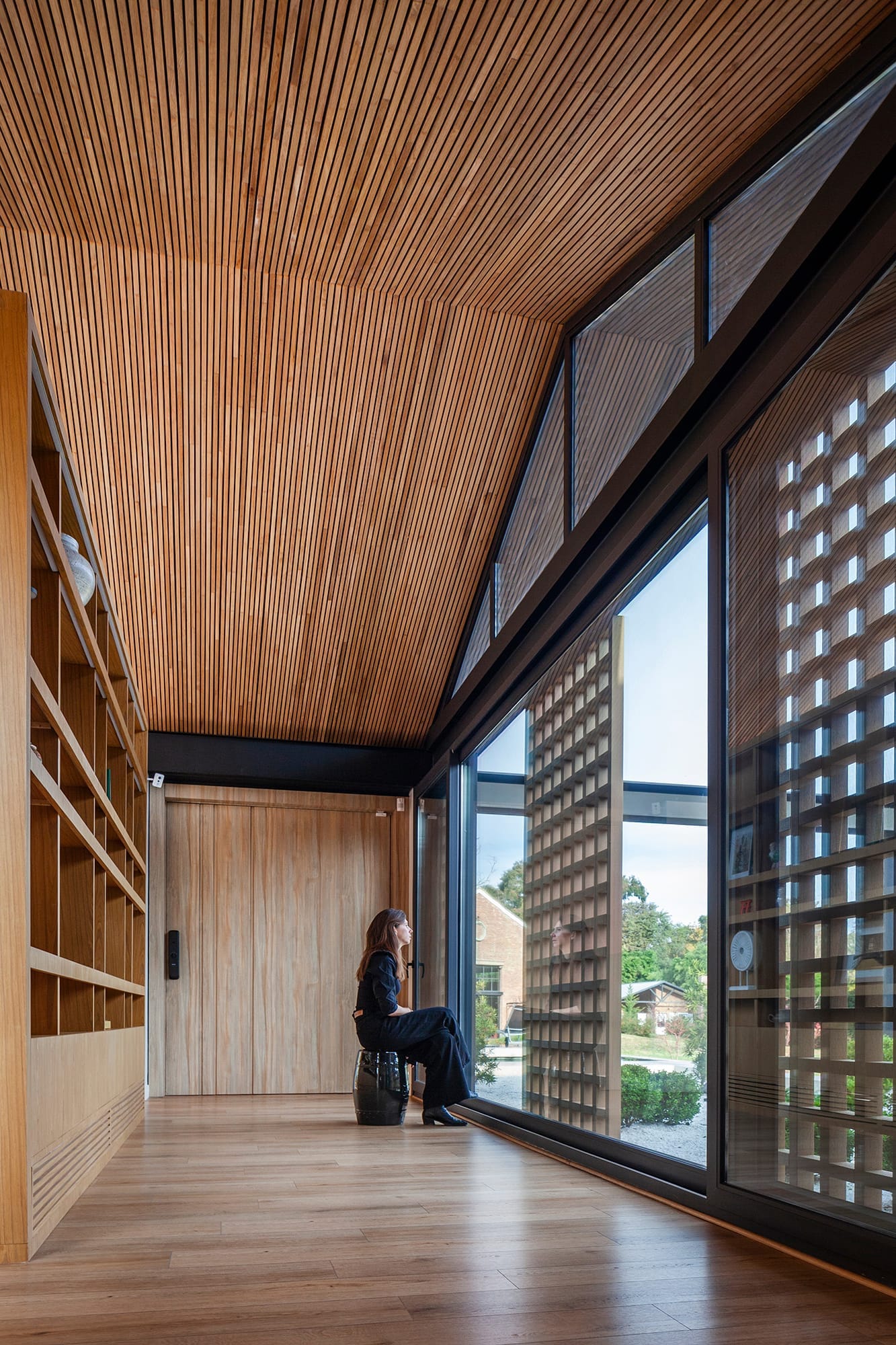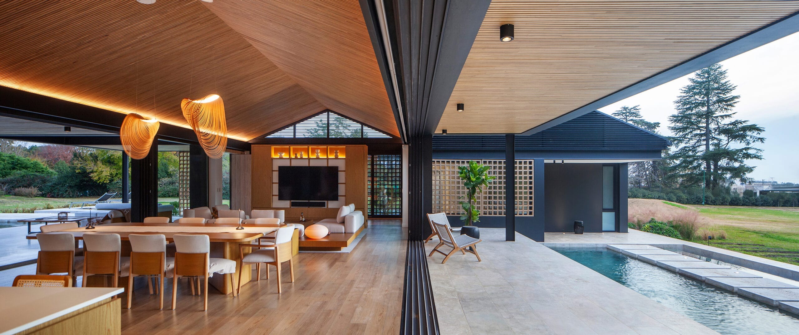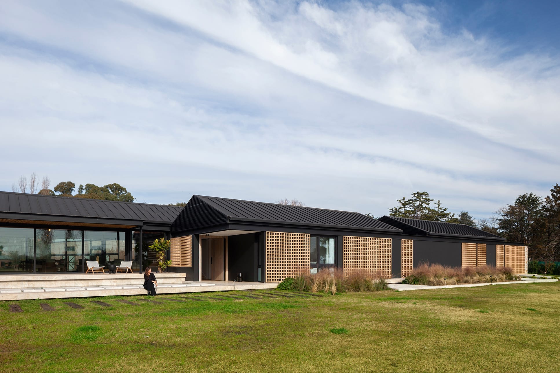 Orilla es una casa pensada para ser vivida entre los límites del interior y el exterior, con una propuesta en la que el entorno forma parte de la arquitectura y logra introducirse en él. Su nombre es la síntesis de su esencia. Implantada en Junín, Provincia de Buenos Aires, Argentina, en un predio abierto constituido por espacios verdes y algunas construcciones preexistentes, la casa se rige por dos temas: potenciar las visuales y las relaciones espaciales internas y externas.