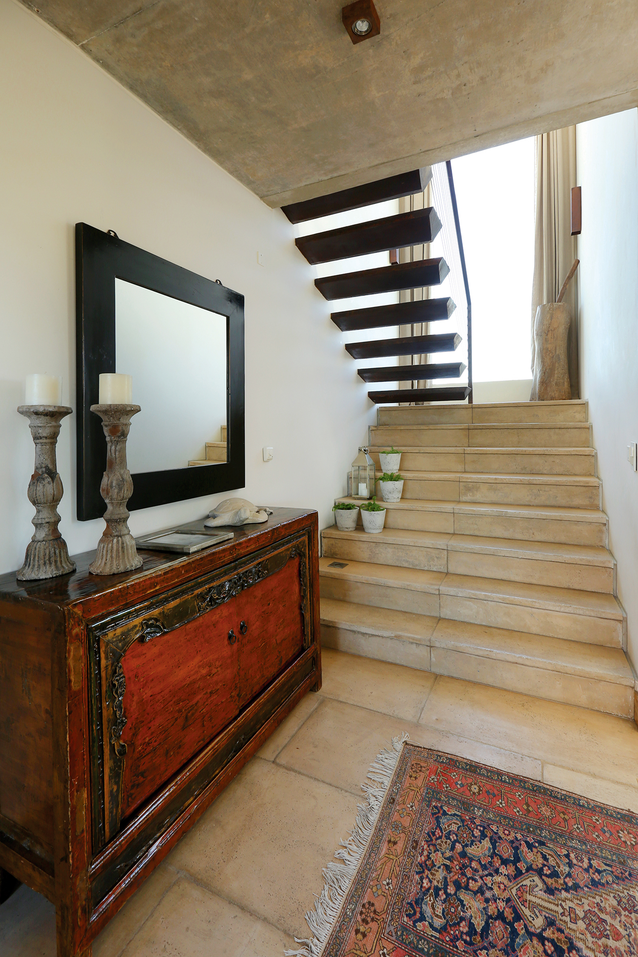 El gusto por el hierro oxidado fue heredado y hoy es aplicado siguiendo el legado de Felicia Sumarán, gran artista y amiga de la familia del arquitecto. Con este recurso decora varios ambientes y diseña objetos singulares para diferentes espacios tanto interiores como exteriores.