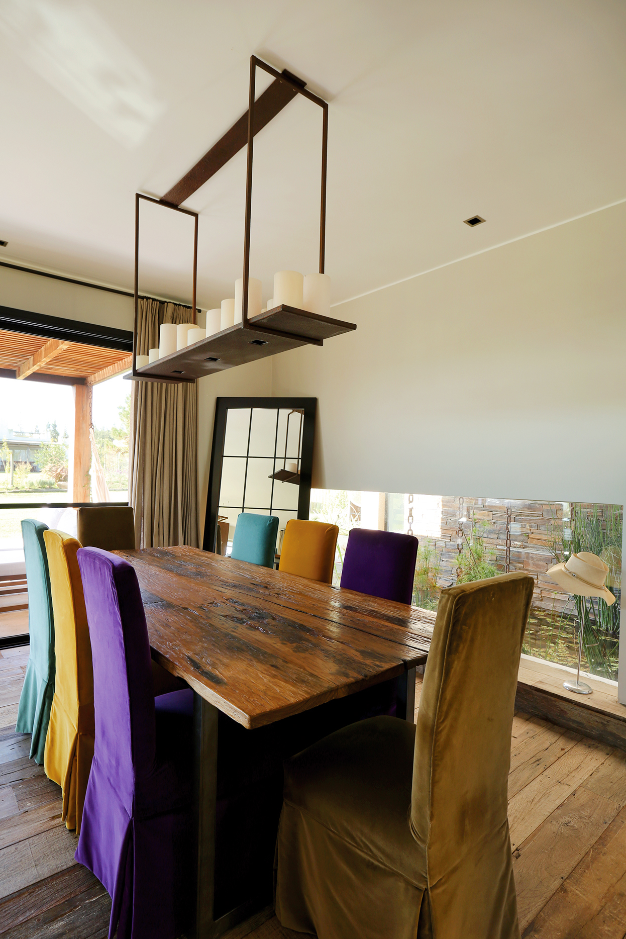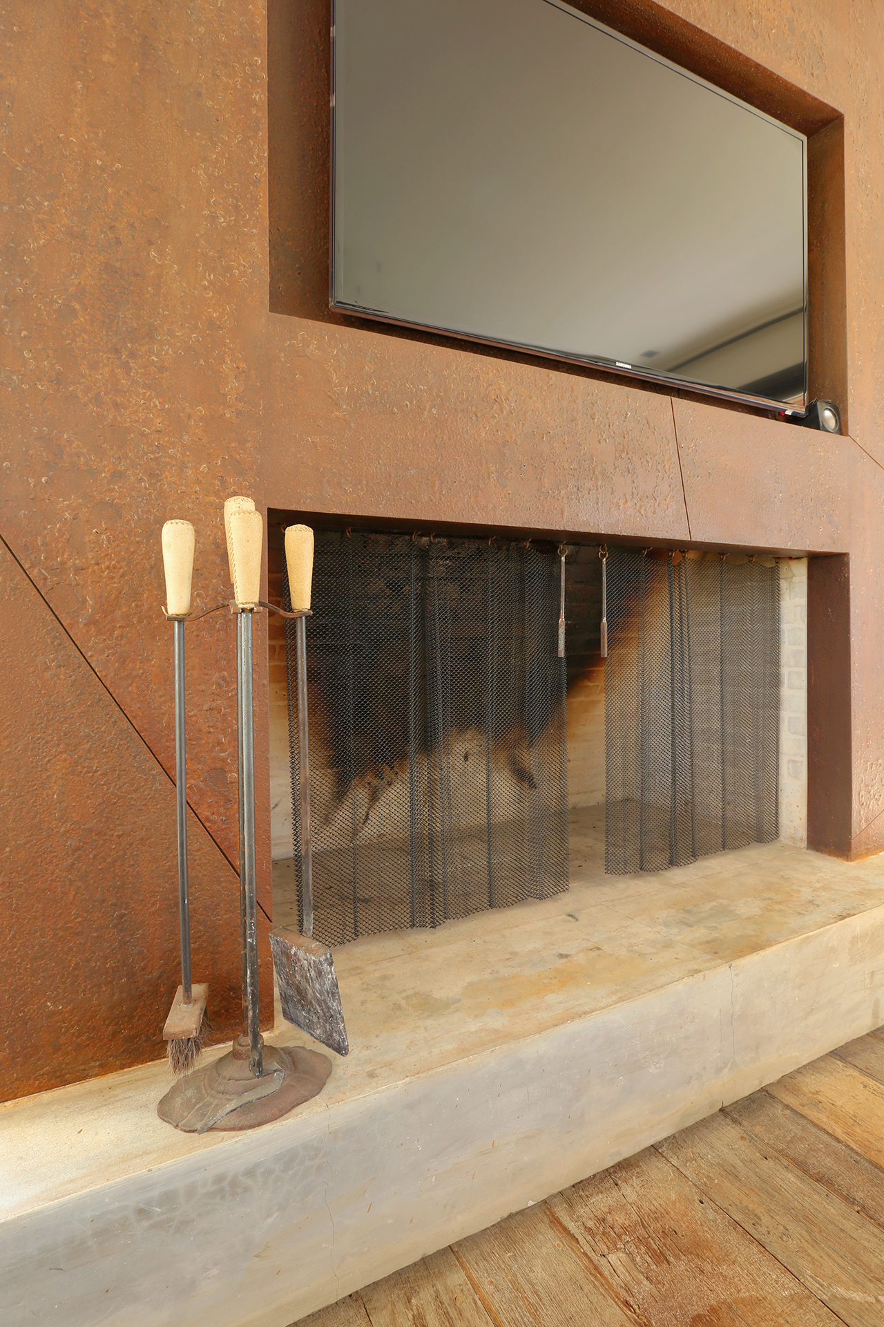 El gusto por el hierro oxidado fue heredado y hoy es aplicado siguiendo el legado de Felicia Sumarán, gran artista y amiga de la familia del arquitecto. Con este recurso decora varios ambientes y diseña objetos singulares para diferentes espacios tanto interiores como exteriores.