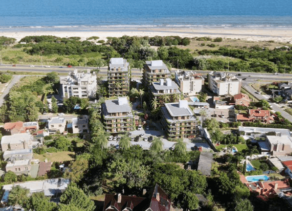 En los últimos años, Canelones ha experimentado una notable metamorfosis, particularmente en la inexplorada franja costera de Barra de Carrasco, donde el paisaje se ha convertido en el lienzo de desarrollos residenciales. En este escenario Costanera Village, propone una nueva visión para el frente urbano costero. Este desarrollo, ubicado en uno de los enclaves más privilegiados a lo largo de la costa, representa un hito en la concepción urbanística de la zona, invitando a las familias jóvenes a redescubrir la vida cerca del agua con la comodidad de estar a un paso de la ciudad. En un terreno de más de 7,500 metros cuadrados y con 1,500 metros cuadrados dedicados a maravillosa planificación paisajística, está compuesto por cinco distintivas villages –Marsella, Capri, Valdivia, Acapulco y Mónaco–. Cada una ofrece un enfoque moderno del concepto de villa, con apartamentos que varían entre uno a cuatro dormitorios. Esta distribución estratégica asegura que cada espacio no solo cuente con vistas privilegiadas, sino que también respire la tranquilidad de su entorno. El diseño del proyecto plantea un diálogo constante con su paisaje, articulando dos líneas de edificios que definen el desarrollo: dos torres frontales de seis pisos y tres más retiradas de cuatro niveles. Este arreglo innovador permite la creación de un extenso jardín que se convierte en el corazón del proyecto, equipado con áreas para barbacoa, piscina, solárium, gimnasio y un espacio de coworking. Estos elementos no solo fomentan un estilo de vida donde se refuerza la idea de comunidad y bienestar.