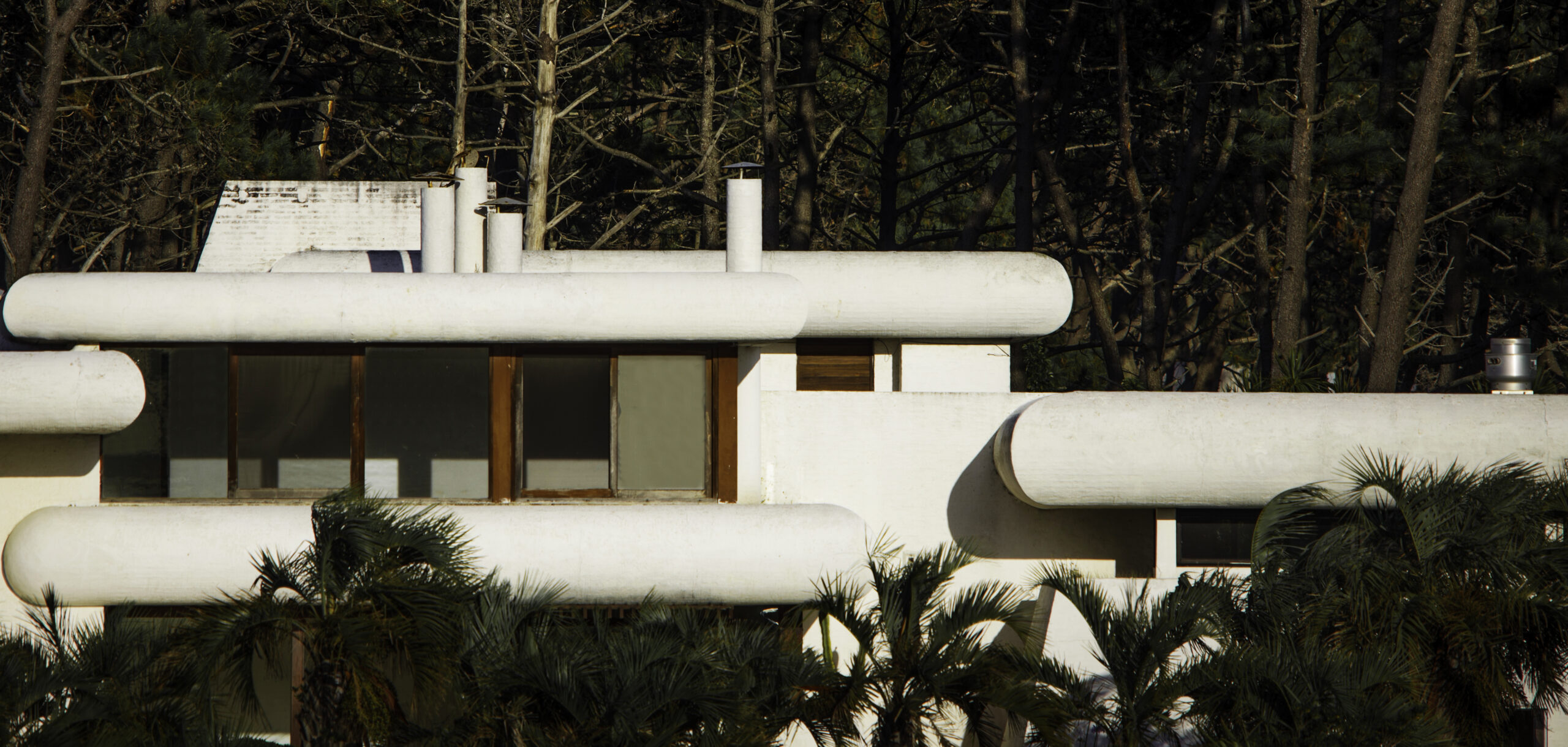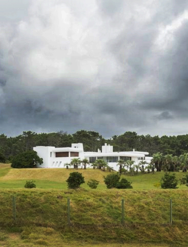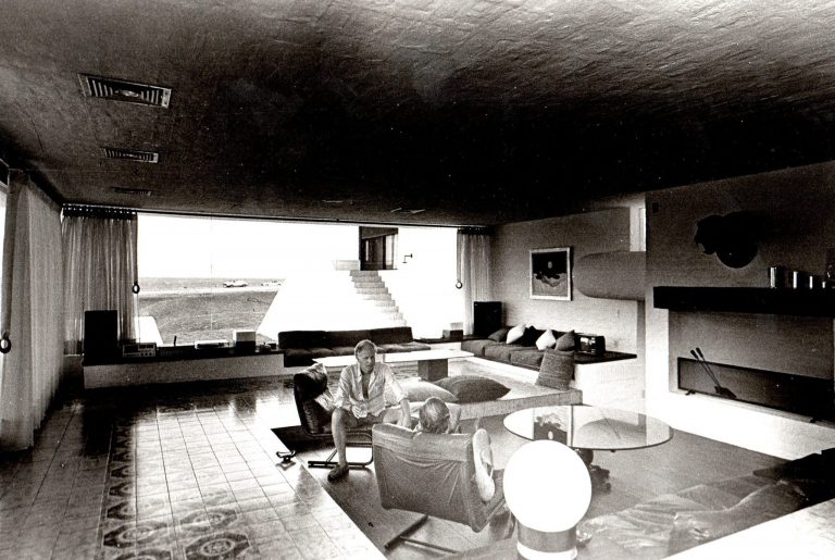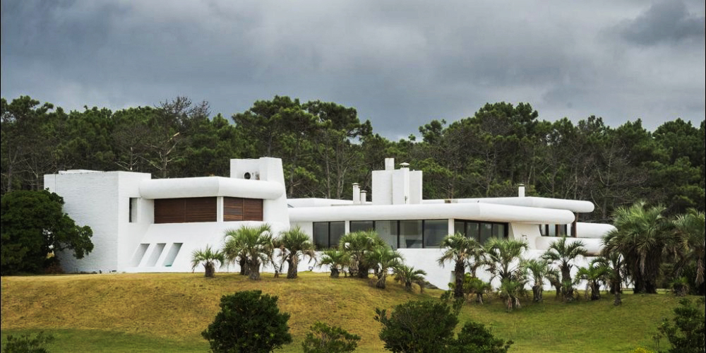 Poseidón surge a partir de una pequeña casa que el arquitecto realiza en Pinares (Punta del Este), a la cual llama Casa de Turismo, obra pequeña y económica, desarrollada en un monoambiente de cien metros cuadrados donde lo único íntimo era el baño, con una importante bañera hacia el jardín y un vestidor, el resto de la casa se desarrollaba en desniveles. Estando allí, un argentino solicita conocerla y resultó ser el dueño del terreno donde luego se realizó Poseidón, a quien le entusiasmó la obra por pequeña y económica, que luego tomó como base de ensayo. El dueño del terreno sobre Laguna del Diario, tenía una hectárea privilegiada y 20 hectáreas más al lado, donde pensaba realizar una urbanización. Una vez realizado el anteproyecto, le pide al arquitecto analizar económicamente el proyecto, para lo cual el objetivo, hacedor de torres, el cual le brinda una visión acerca de la posible inversión. El Cr. Lecueder habló sobre el lugar, único, con vistas a la bahía, a Punta del Este y ubicado en la Laguna de Diario, pero cuando estudia el proyecto concluye que no era una buena inversión, ya que debería construir donde la gente compra y los argentinos compran en La Península o La Brava. Con este panorama, el arquitecto Flores Flores daba por perdido el encargo, pero el argentino le plantea que no quiere realizarlo como inversión, sino que pretendía realizar una casa propia en ese lugar privilegiado. Con un desarrollo horizontal, en desniveles, Poseidón se extiende sobre el terreno de manera calma, permitiendo que el habitante recorra sus espacios fluidamente. Acompañando el uso de la vivienda, los ambientes se activan y Poseidón se llena de vida. Una vez más el arquitecto utiliza los lineamientos de la arquitectura blanca para armonizar los elementos naturales con los artificiales y crear un paisaje cultural sumamente rico, icónico en la arquitectura del Este.