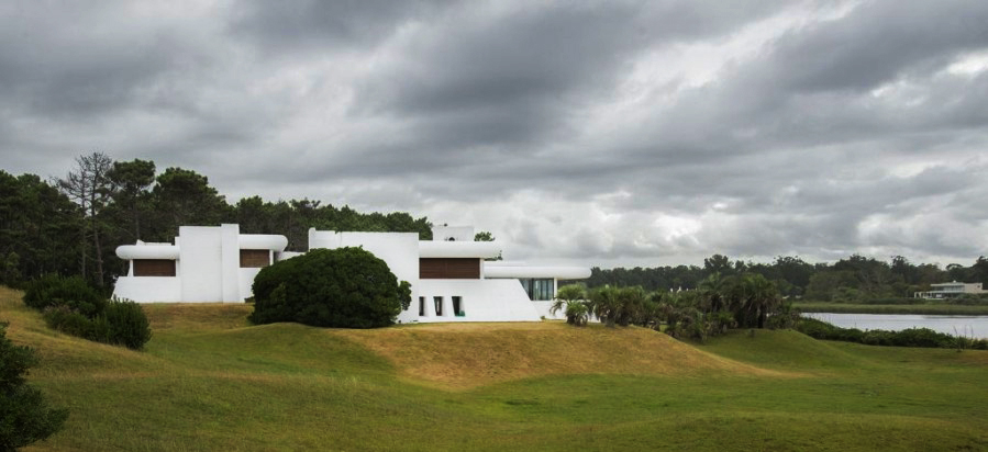 Se propone realizar una urbanización náutica uniendo el terreno con la laguna en las 20 hectáreas restantes, ya que el terreno era inundable. Con este proyecto se realiza el espacio para las calles y se vuelca la arena en el predio de la casa. Como solución para la cimentación se ejecuta una estructura sobre pilotes dejando el terreno debajo hueco. Se colocaron cinco mil camiones de relleno alrededor de Poseidón, creando así un terreno artificial para solucionar la problemática.