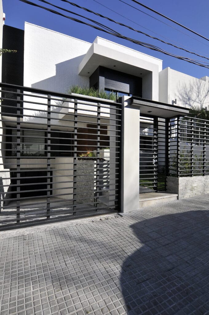 A nivel urbano la volumetría escalonada de la casa, la elección de materiales nobles como el ladrillo, el hormigón y los revestimientos en laja gris así como la cuidadosa presencia de jardinería en el retiro frontal y en jardineras integradas a la arquitectura no permiten imaginar la amplia escala de la casa. La entrada principal es a través de una puerta de acero corten, material de vanguardia pero nada estridente, a tono con todas las opciones estéticas. El cambio de escala y de intensidad se dan al ingresar y ser recibidos por la doble altura bañada en luz cenital. Las arquitectas consideran que el cielo es la quinta fachada, y la luz natural siempre aporta, por ello en esta casa hay también lucernarios sobre la escalera principal y en el baño de la suite principal.