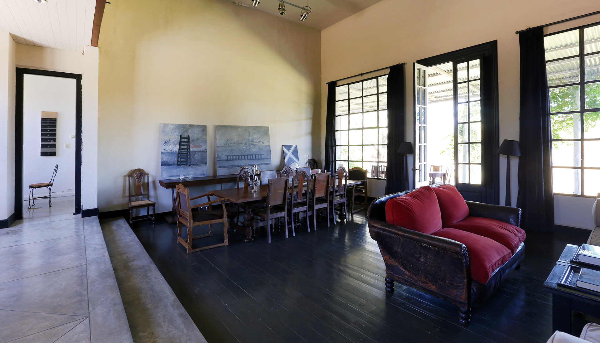 Es importante destacar que los ambientes tienen techos muy altos, de cuatro metros y medio en living, comedor y hall de entrada. Las aberturas de tres metros de altura fueron compradas a la empresa que demolió la casa de sus abuelos, una de las ultimas emblemáticas de Pocitos. Esta condicionante es significante a los efectos de proyecto, logrando ambientes muy generosos en las tres dimensiones.