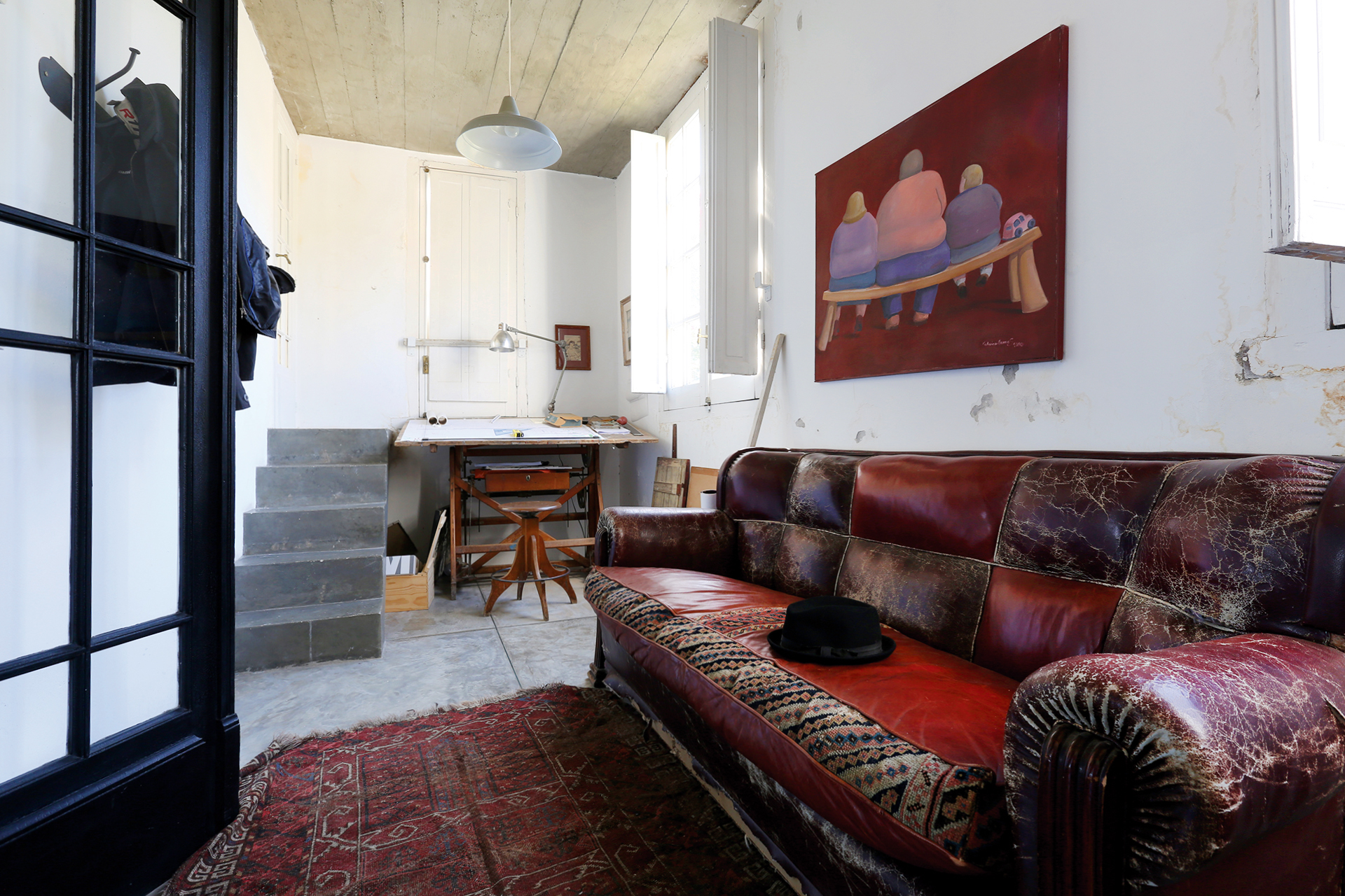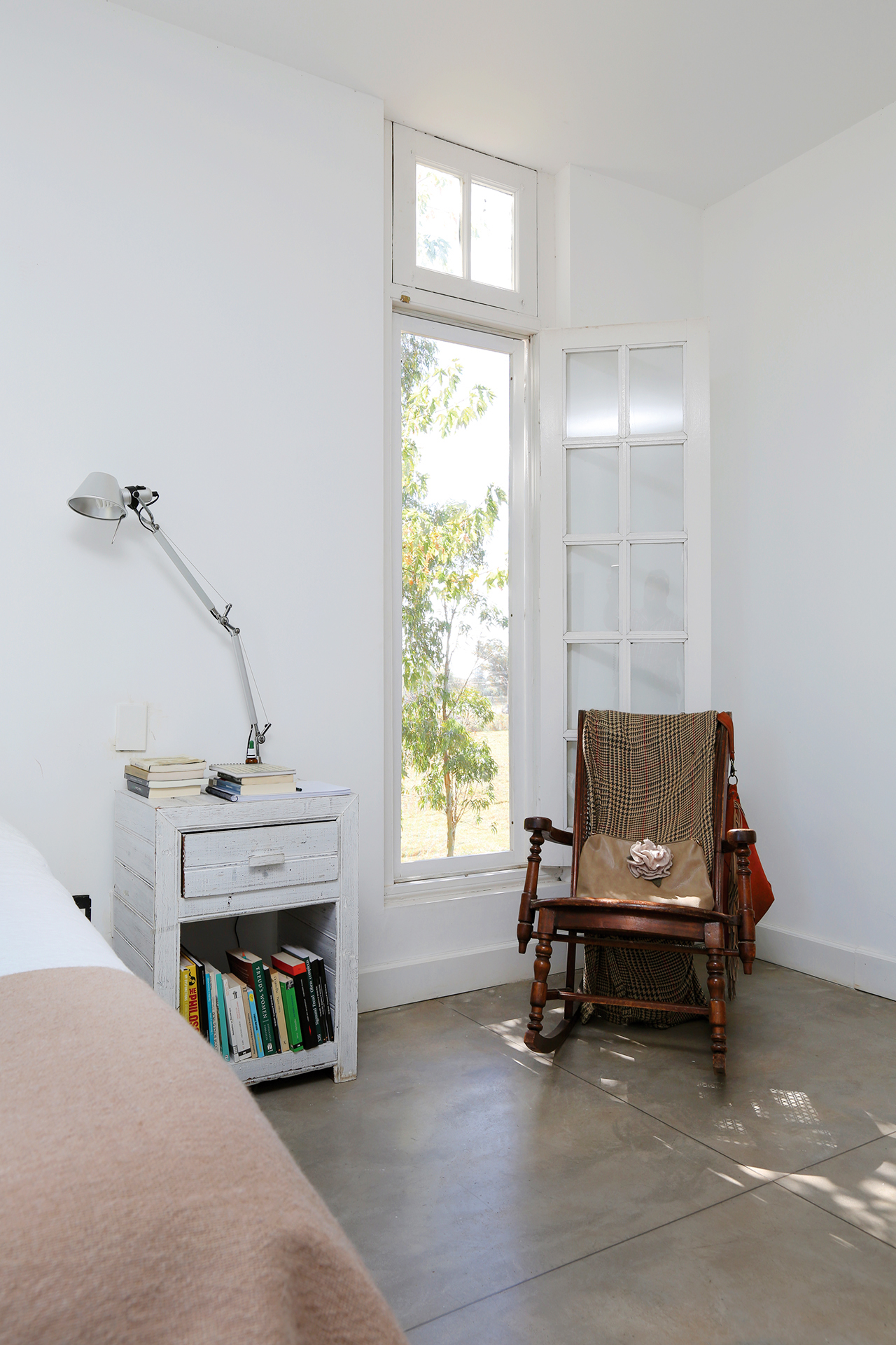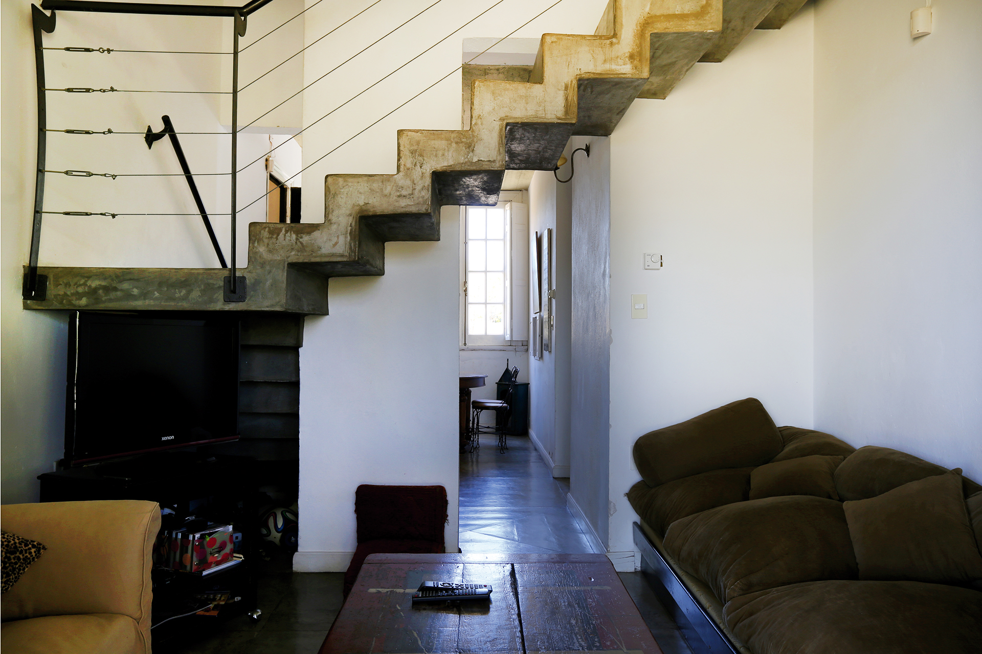 Tanto el arquitecto como su esposa han sido los encargados de realizar la ambientación de los espacios interiores con objetos y muebles de remates, algunos heredados, de demoliciones y otros de su autoría, en fibras naturales, cuero y madera. La decoración complementa las materialidades existentes, pavimentos en cemento lustrado y madera llevada a gris, paredes en colores neutros; confiriéndole a los ambientes amplios y luminosos un toque rústico y cálido.