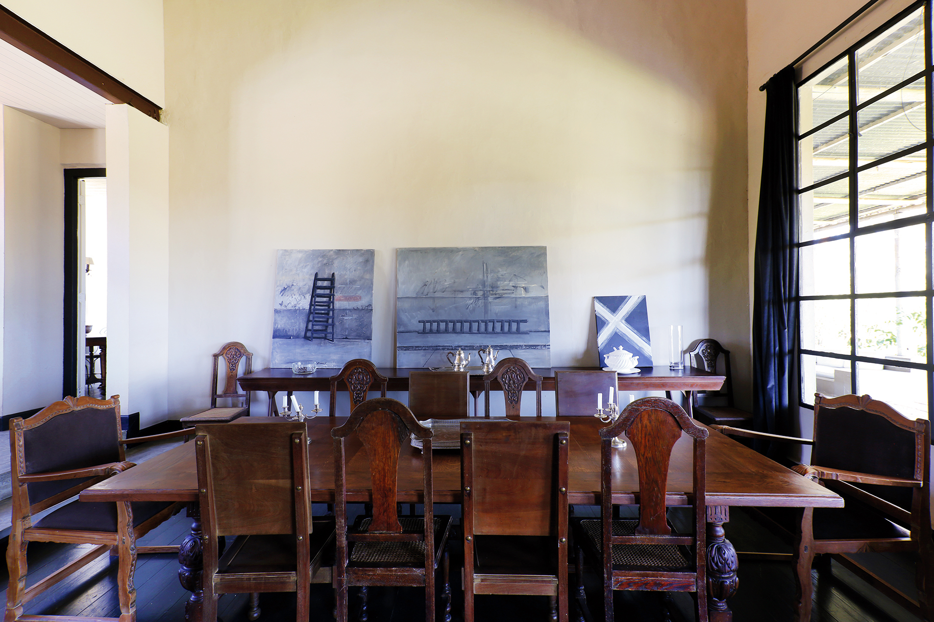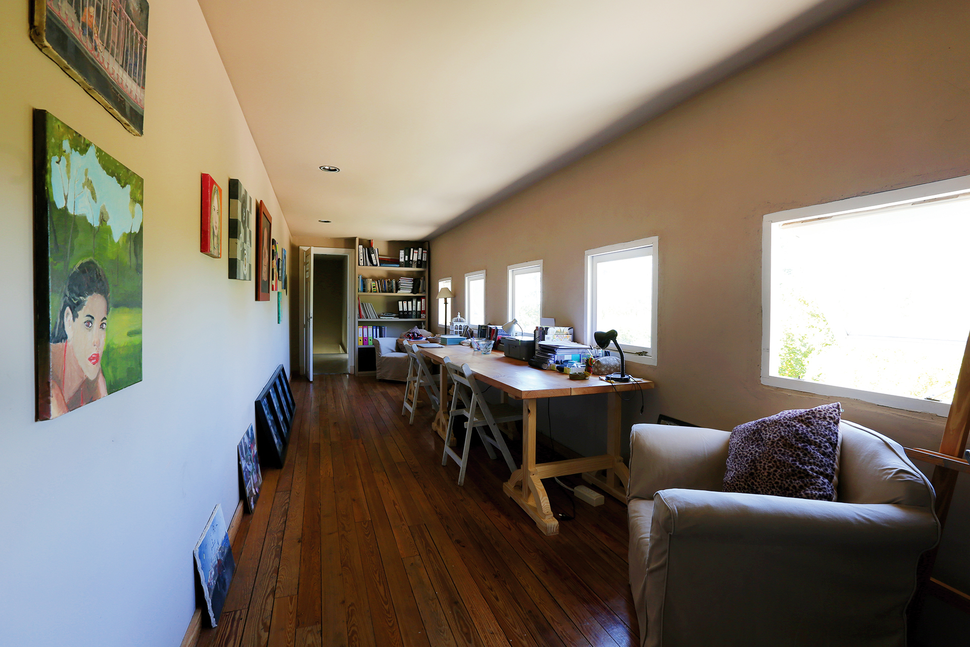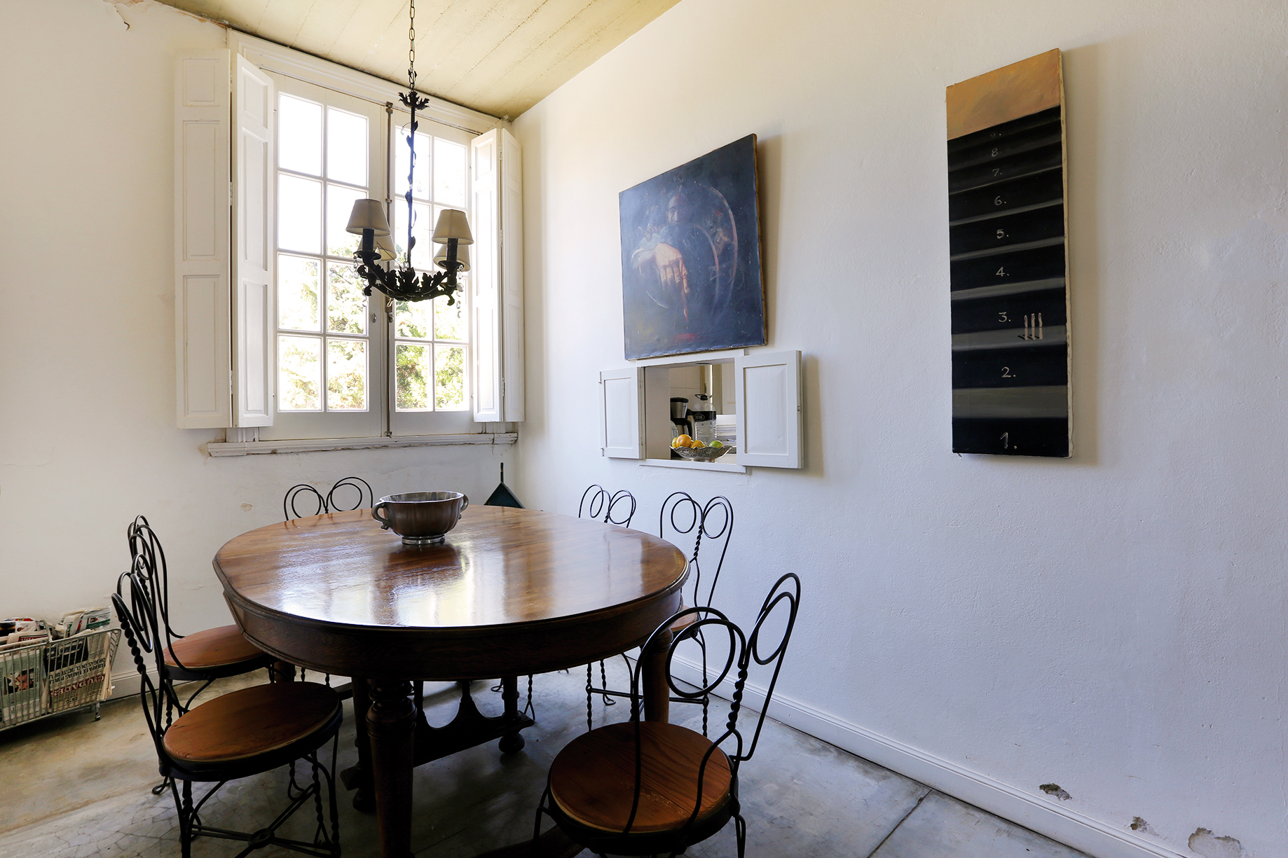 Tanto el arquitecto como su esposa han sido los encargados de realizar la ambientación de los espacios interiores con objetos y muebles de remates, algunos heredados, de demoliciones y otros de su autoría, en fibras naturales, cuero y madera. La decoración complementa las materialidades existentes, pavimentos en cemento lustrado y madera llevada a gris, paredes en colores neutros; confiriéndole a los ambientes amplios y luminosos un toque rústico y cálido.