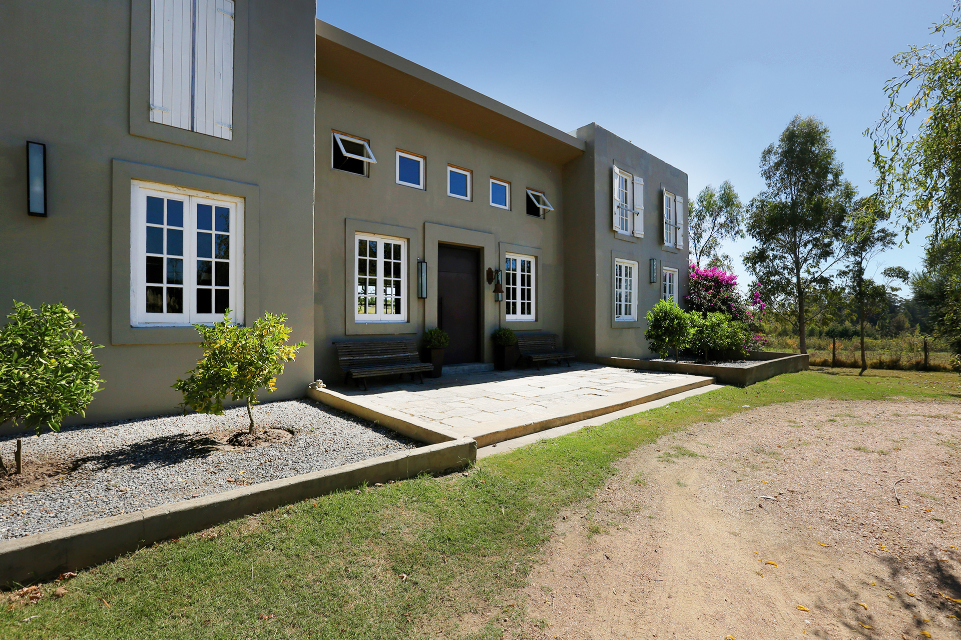 Una generosa terraza del largo de la casa rematada por la estufa a leña que muchas veces oficia de parrillero, conforma un agradable estar exterior, ideal para disfrutar atardeceres con vistas infinitas hacia el paisaje campestre, dando la sensación de estar en el interior rural.