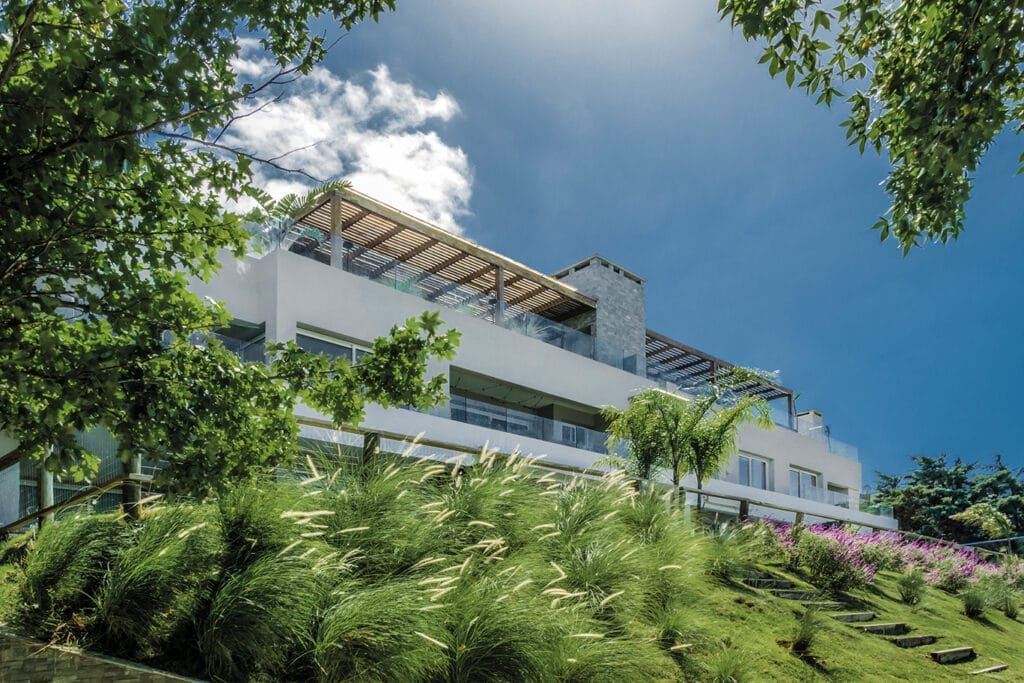 El edificio cuenta con un gran parque-jardín que fluye entre los bloques y se encuentra con el lago, en un entorno seguro, muy natural e integrado al paisaje. Las distintas fachadas que configuran la estructura del edificio muestran un delicado gesto arquitectónico por medio de llenos y vacíos que generan las distintas terrazas en los niveles más altos que en composición modelan la fachada de forma rítmica y, al mismo tiempo, el carácter lineal que marca la fachada posterior asigna personalidad al conjunto y vitalidad a la zona.
