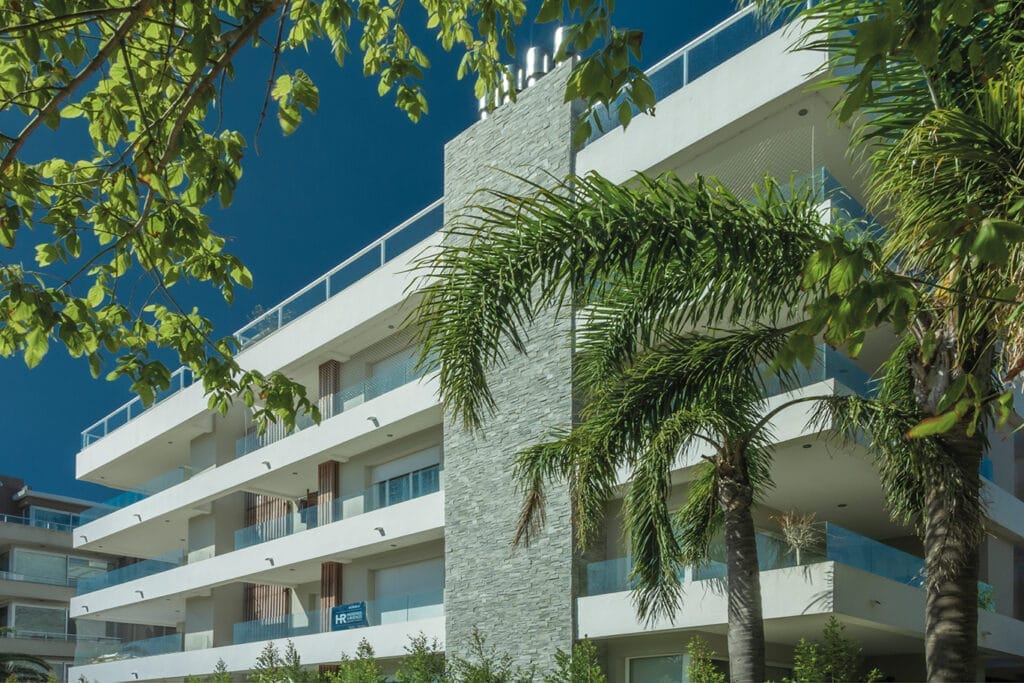 El complejo se presenta con dos elegantes bloques bajos, orientados hacia las mejores visuales de Parque Miramar. El edificio se desarrolla en un gran volumen con subsuelo y tres niveles. El subsuelo alberga los garajes y zonas de servicio.