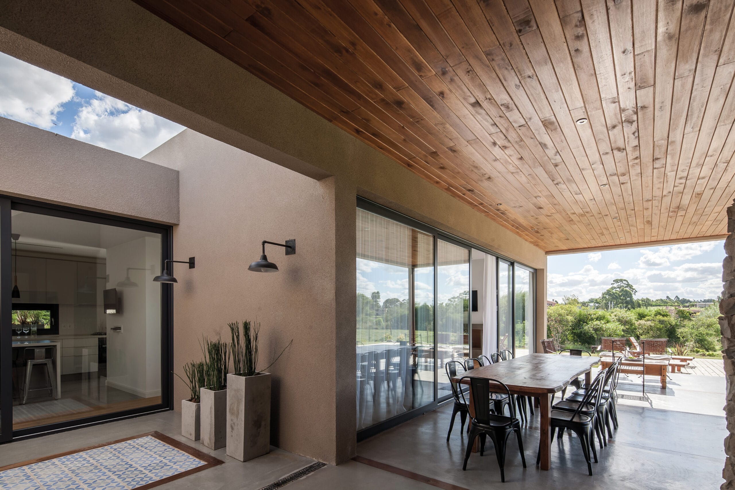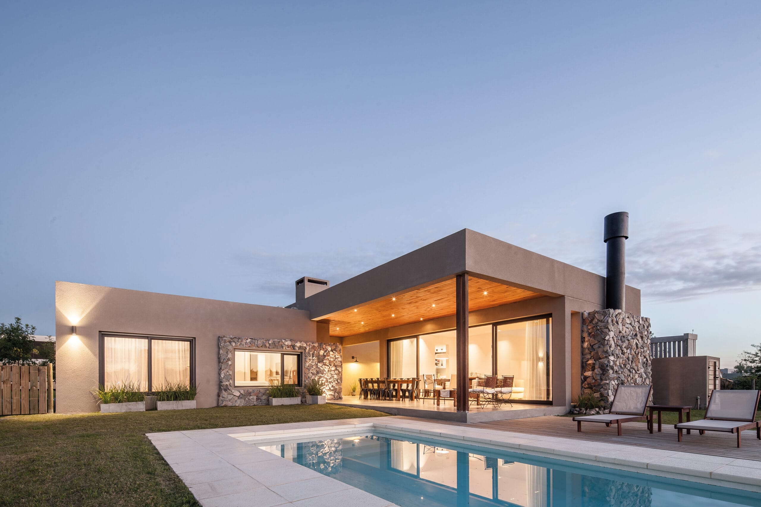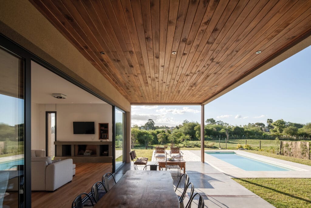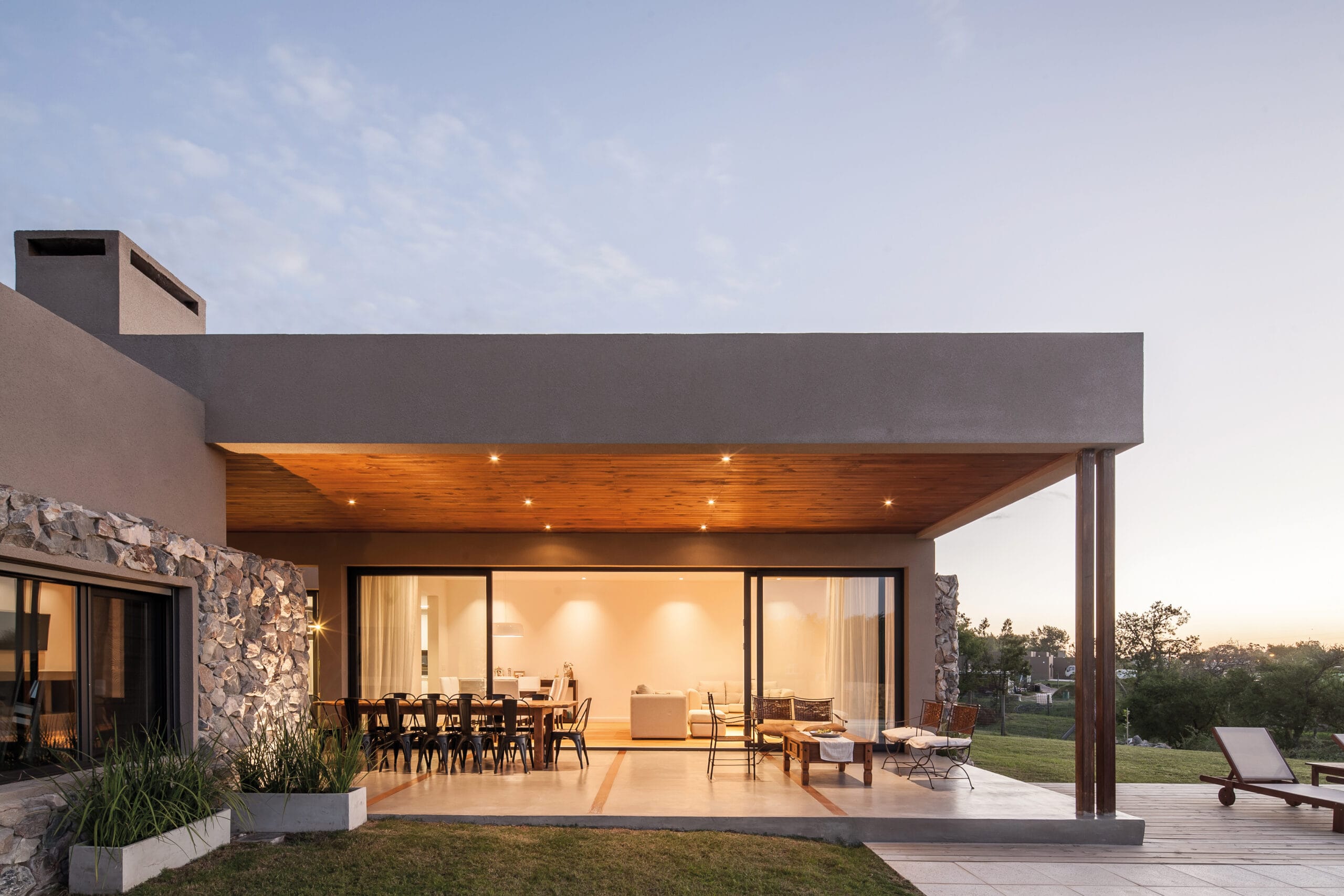 Luego de varias reformas, con la arquitecta Bianchi en Australia, llegó el esperado primer encargo; su primer obra. La misma entonces, fue diseñada y soñada por Ignacio Bonifacino y María Lucía Ferrés. Los habitantes dan cuenta de un matrimonio consolidado con una hija ya grande, e independiente. Tras años de vivir puertas adentro en ciudad, se optó por un terreno en el barrio privado Viñedos de la Tahona, terreno que escondía un cambio de vida y un reencuentro con viejos amigos y con una vida social más activa. Ferrés y Bonifacino emprendieron la búsqueda del terreno con la obsesión de quién asume tamaña responsabilidad con sinceridad y mucha responsabilidad; sus habitantes buscaban un cambio en su vida y ponían en sus manos el diseño del hogar en dónde todo sucedería. En la obra se priorizó la funcionalidad y la eficiencia energética; con 160 metros cuadrados interiores y 90 metros cuadrados exteriores la casa logra con elegancia todo lo que sus habitantes buscaban. Basta con caminar pocos pasos de la casa, para entender que todo allí, está bien.