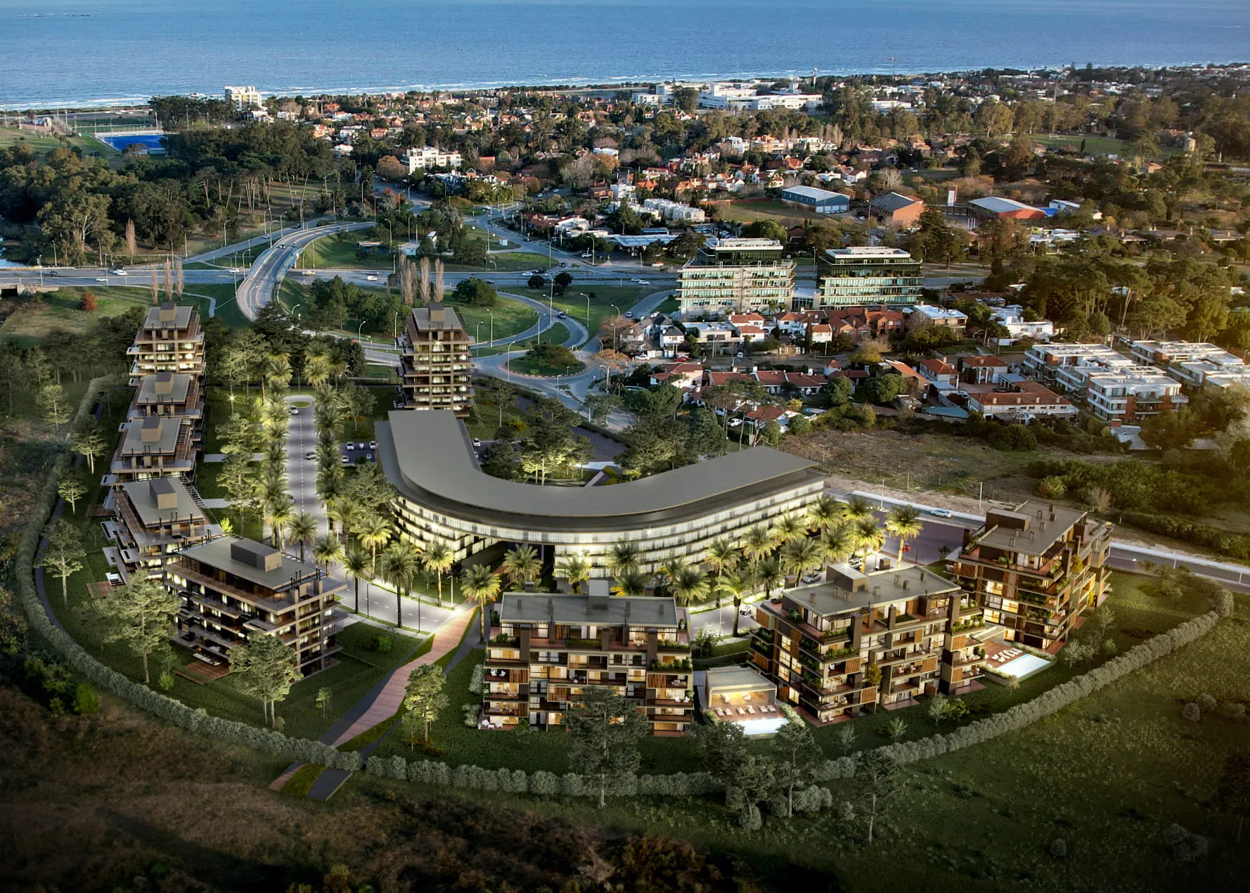 La severidad proyectual, que prevé absolutamente todo desde el primer movimiento de tierra, se ha concentrado en la preparación del terreno, que ya luce con su caminería central, una suerte de boulevard que recorre todo el precio de norte a sur, articulando los accesos a todas las estructuras previstas. A la vez los jardines ya están plantados y crecerán junto con la obra. Una gran plaza central enmarcada por la gran estructura desplegada en arco y concebida para usos mixtos, integrará un centro comercial, cuenta con una importante escultura de xxxxxxx, que señala con énfasis la voluntad de CCD DAMIANI por apostar a la integración de las obras de arte a sus emprendimientos.