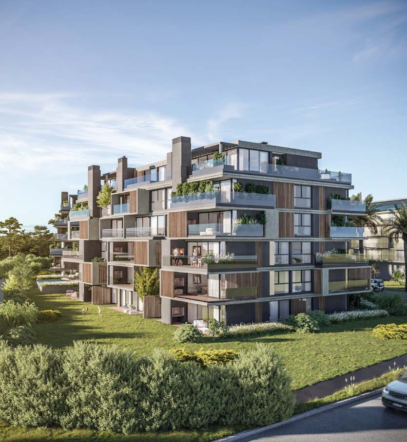 Liv Aura, Liv Orión y Liv Nova son los tres primeros edificios que comienzan a construirse en julio. En ellos y su estética vemos la evolución natural que instaló Well, con frentes abiertos hacia el paisaje y con terrazas que en este caso quedan enmarcadas por cintas que resuelven las fachadas y contienen espacios verdes. El dato a señalar está en la preocupación por la circulación vehicular y también por la peatonal, en este proyecto todo está contemplado y entonces además de complejizar la zona, completando al territorio habitado, se propone una solución a tiempo, para que la vida resulte amable también al caminar. Más allá de las consideraciones impuestas por la normativa municipal para estos casos, al revisar el Master Plan surge claramente una relación no habitual entre el espacio habitado y el paisaje circundante, a favor de éste último. Las sendas peatonales enmarcadas por césped dispuesto lateralmente, las enormes butia que enmarcan la gran avenida central, el mantenimiento de árboles y la plantación de nuevas especies, asignan a este distrito un vigor único que entendemos será referencia para la ciudad.