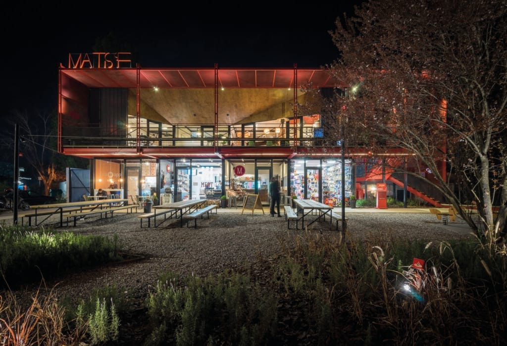 Se puede describirlo en 3 claves fundamentales: El Rojo, un sendero que recorre e invade el predio tejiendo el proyecto; La Corneta, amplificador y mirador de Parque Miramar; y el Parque de Gramíneas, borde difuso entre el entorno y Matisse, lugar de juego y encuentro. El sistema constructivo es prefabricado y montado en obra seca en su amplia mayoría. Una trama metálica que estructura al proyecto en su totalidad, dándole forma y expresión. Cerramientos en chapa, policarbonato translúcido y vidrio. Por último se utilizó la madera para aportar rusticidad y calidez, tanto en el pavimento del recorrido así como en el cielorraso de La Corneta.