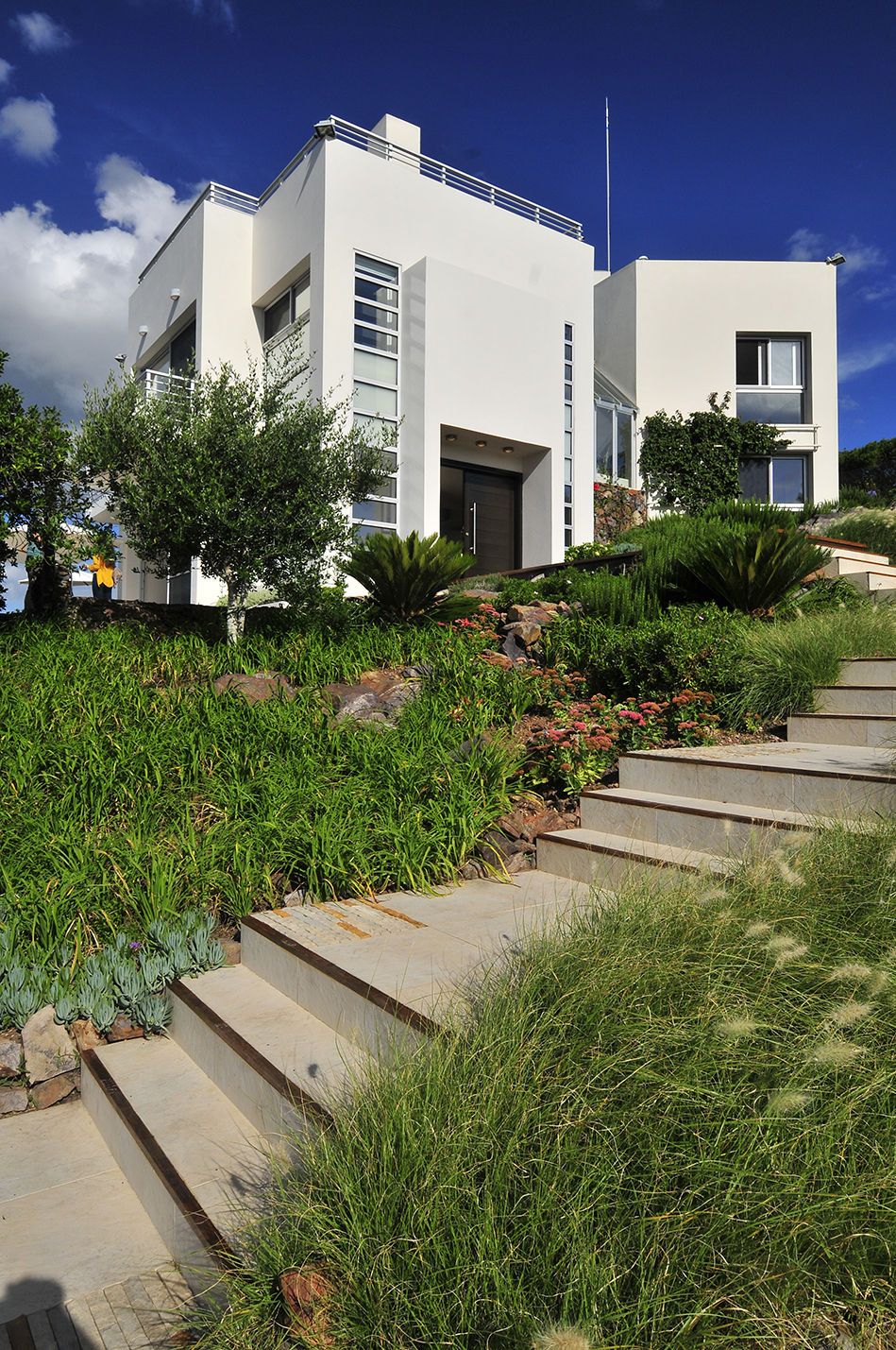 Desde lo más alto del Cerro San Antonio en Piriápolis, esta casa que cautiva por su vista, la simpleza de sus formas, su minucioso jardín y la piscina que no distingue limites con el mar, refleja el trabajo que realizaron en conjunto la arquitecta uruguaya Nora Pardo y sus propietarios, donde el desafío de aprovechar al máximo la vista se cumple por completo. Una casa destinada para pasar los meses más cálidos del año en un lugar elegido por la inmensa tranquilidad que propone el paisaje.