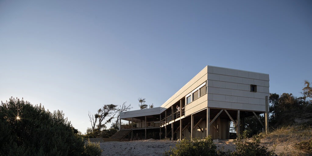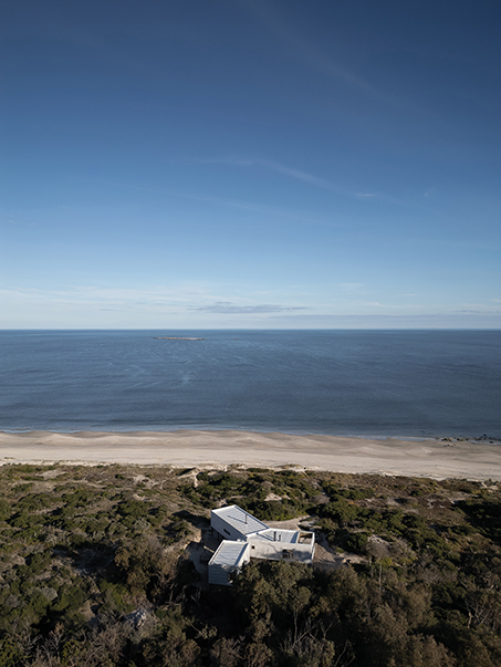 Esta casa se sitúa sobre un terreno de 7,5 hectáreas en la costa del Río de la Plata, con acceso directo a la playa. El terreno cuenta con una amplia área arenosa cubierta por pastizales y vegetación arbustiva que estabilizan los médanos originales. Además, se caracteriza por la presencia de un monte nativo que ocupa gran parte del espacio y su preservación guio las decisiones del proyecto.