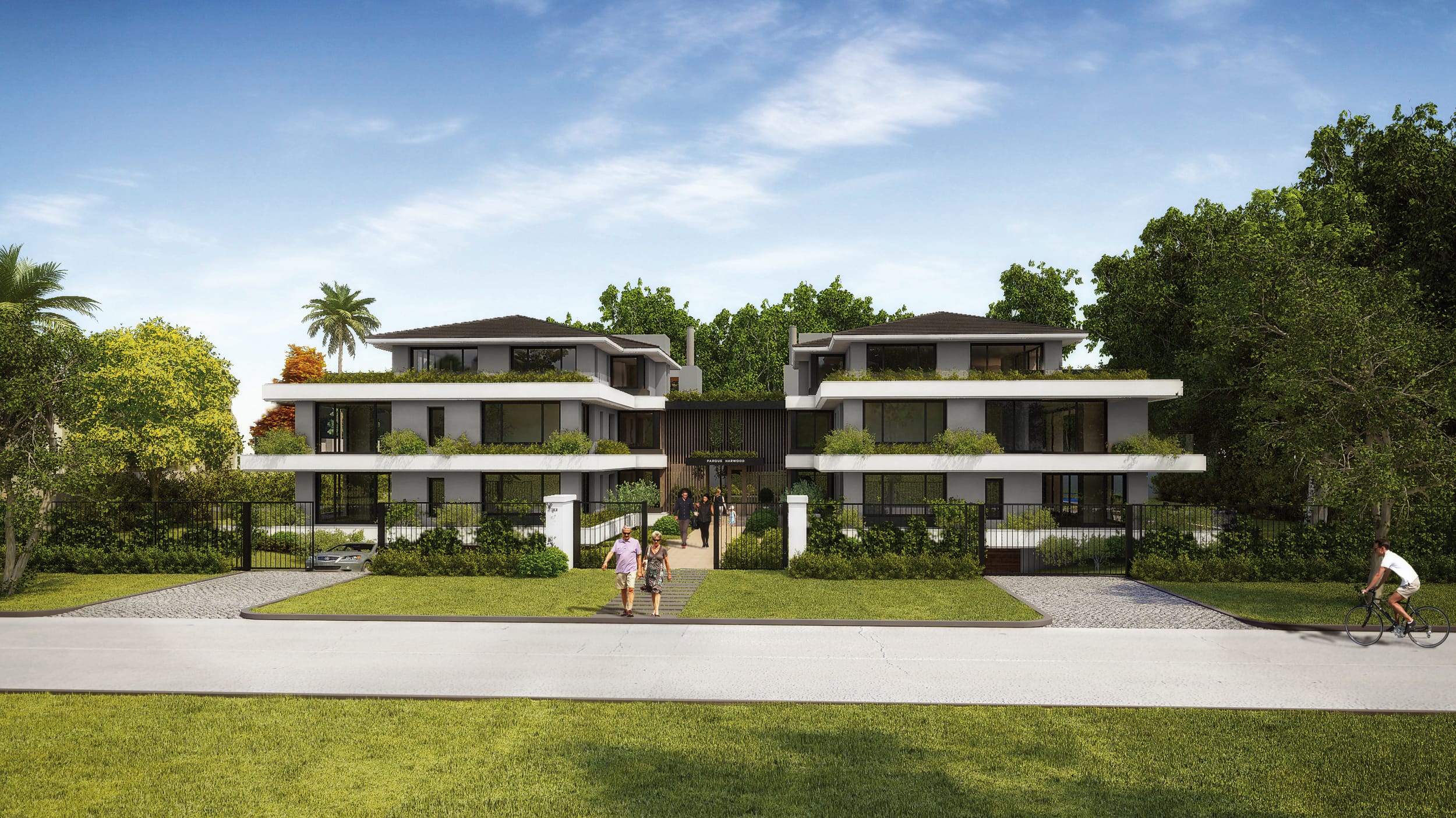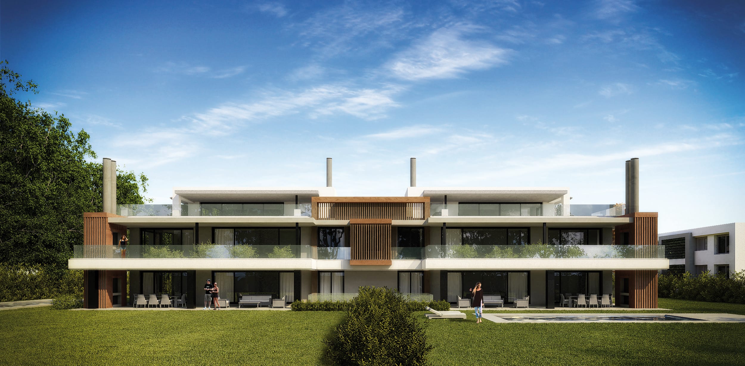 Un predio de grandes dimensiones en el corazón de Carrasco es el emplazamiento ideal para este emprendimiento residencial colectivo. La obra cuenta con 3 niveles y un subsuelo que aloja áreas de parking y servicios complementarios. La fachada principal fragmentada en 2 tramos asimilables a construcciones unifamiliares, dejan en el eje de la composición un plano rehundido que configura y moldea el acceso. El complejo agrupa de 7 residencias con tipologías diferentes conformando una volumetría organizada en bandejas horizontales inmersas en un parque verde.