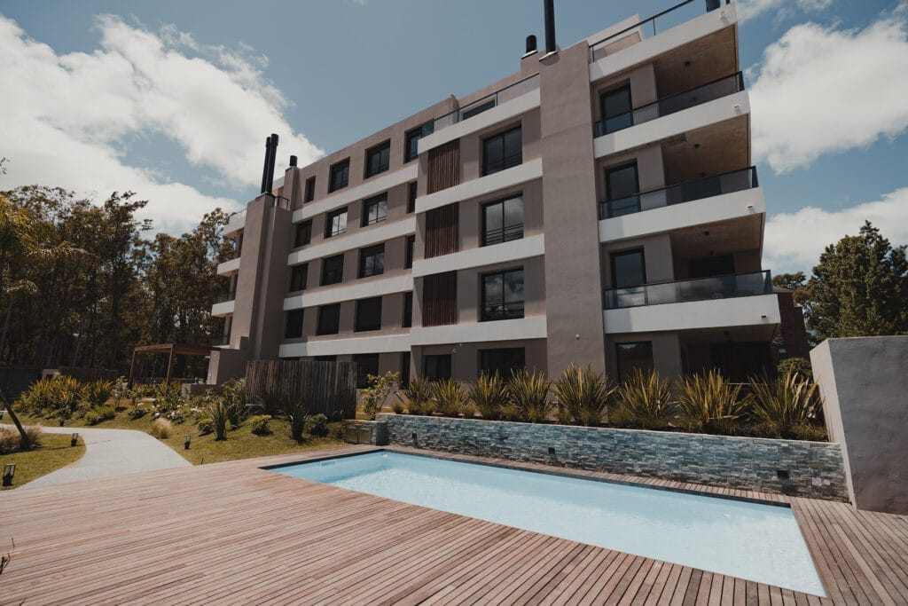 Los apartamentos se proyectan con hogar, calefacción por losa radiante o gas individual, cocheras individuales, boxes con bicicleteros. Los amenities proyectados juegan con los 3.200 metros cuadrados parquizados e incluyen un club house con parrillero, espacios exteriores equipados, piscina con solárium y dos accesos vehiculares controlados.