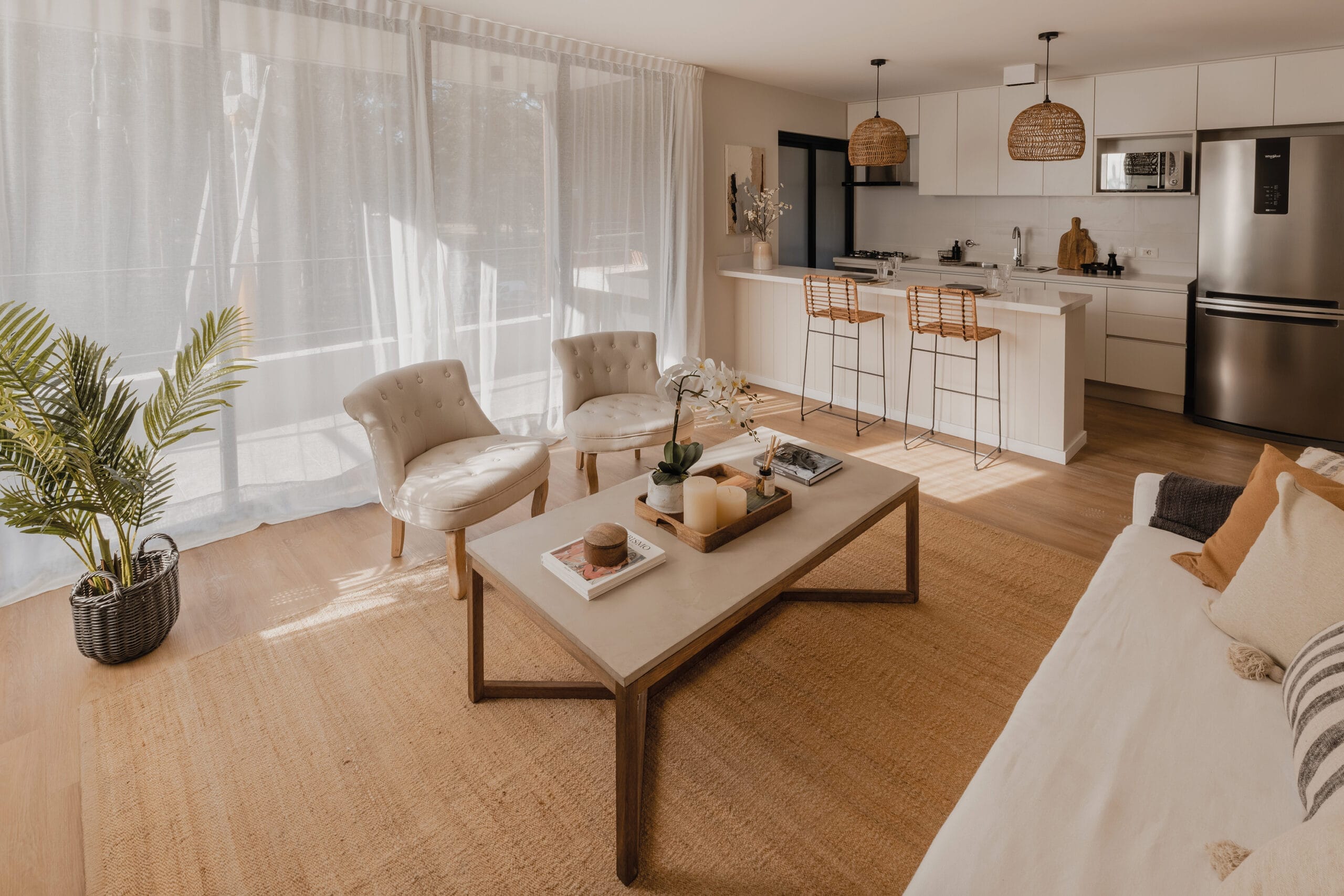 Los apartamentos se proyectan con hogar, calefacción por losa radiante o gas individual, cocheras individuales, boxes con bicicleteros. Los amenities proyectados juegan con los 3.200 metros cuadrados parquizados e incluyen un club house con parrillero, espacios exteriores equipados, piscina con solárium y dos accesos vehiculares controlados.