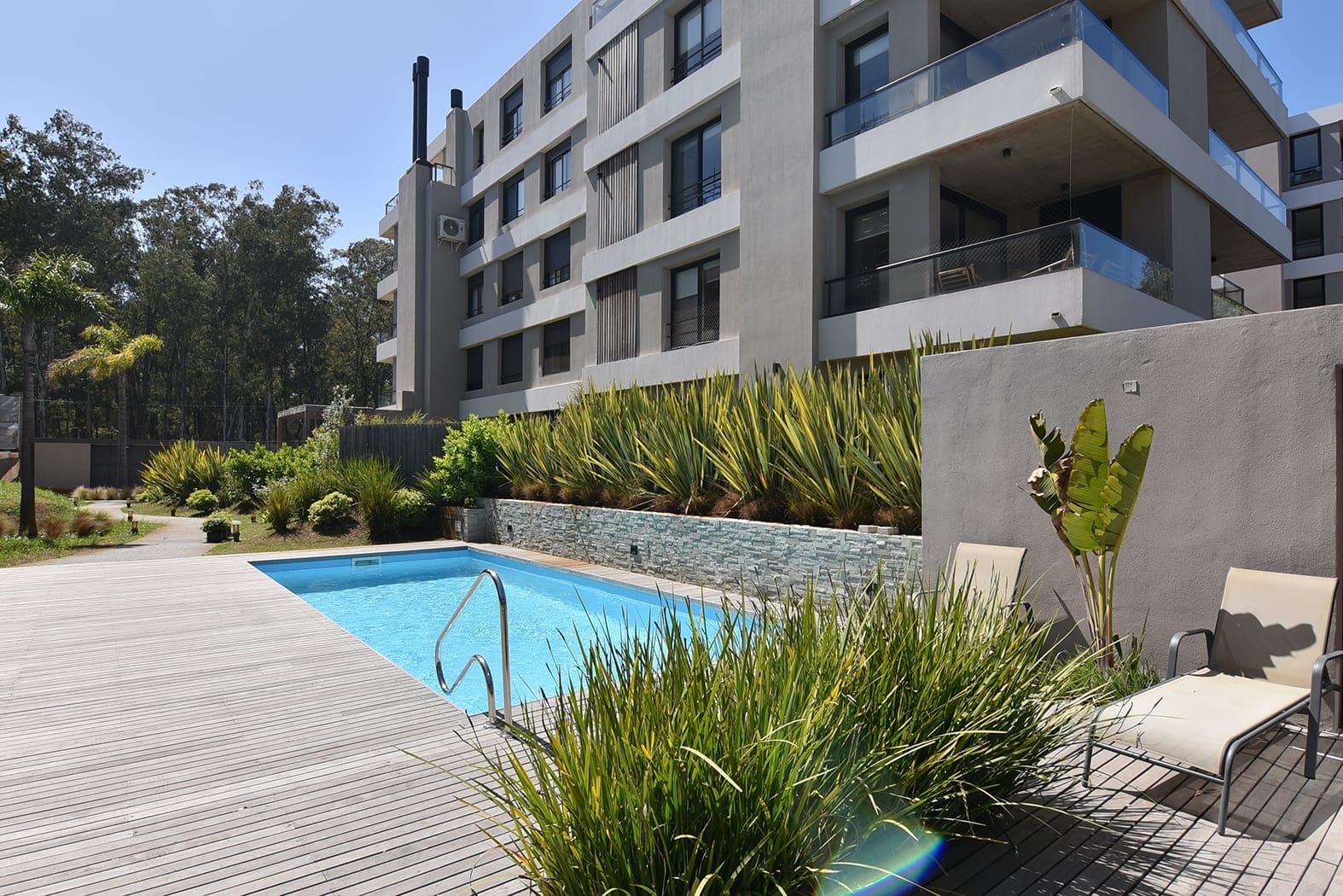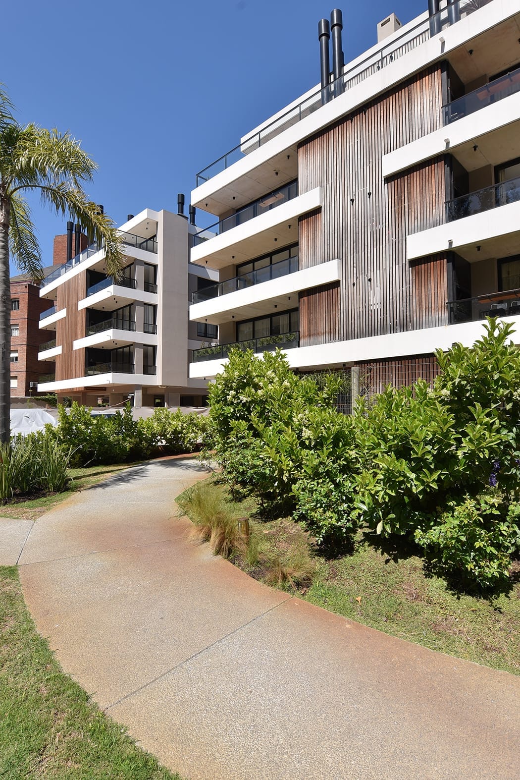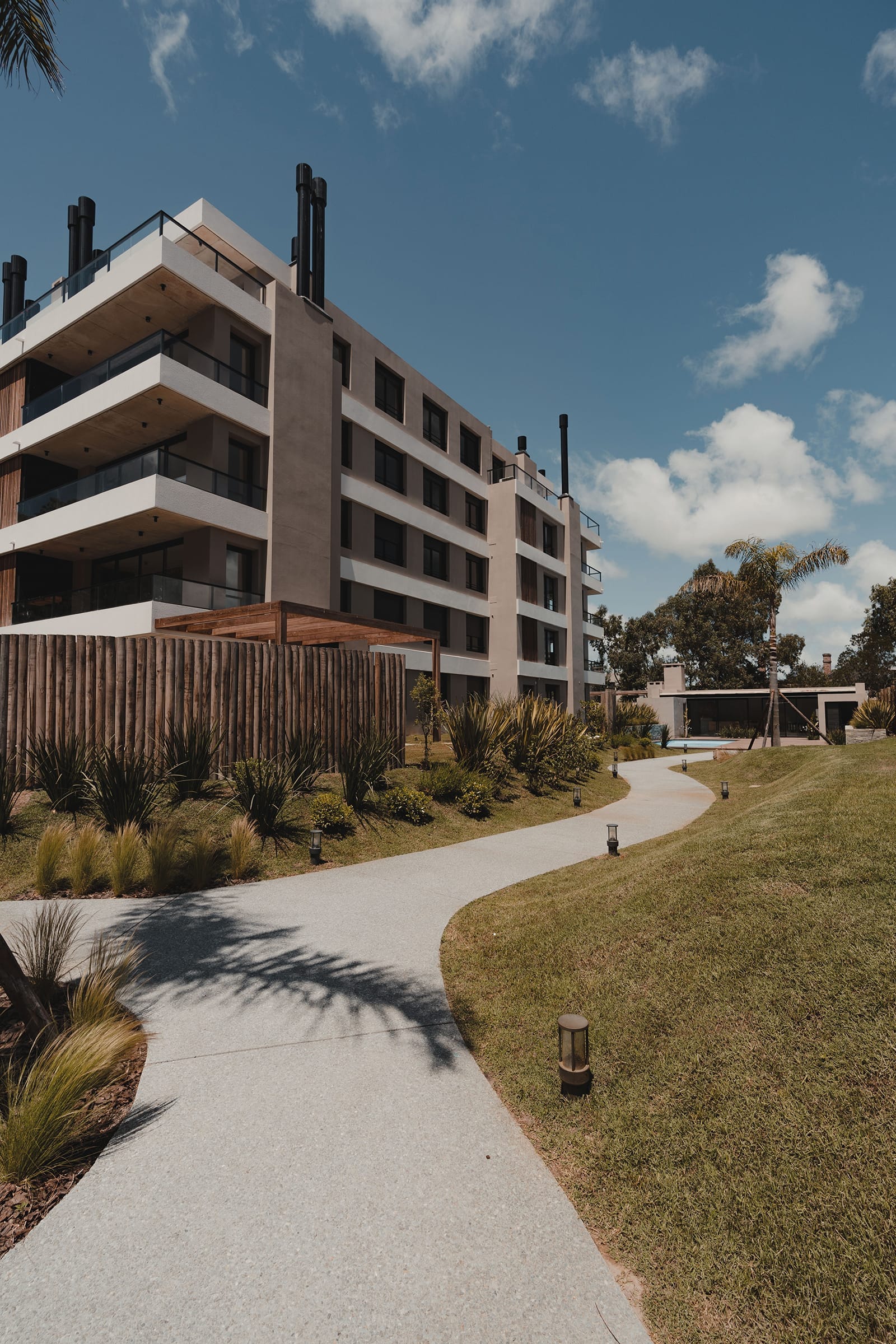 La propuesta se apoya en la consolidación de la urbanización en la cual se inserta naturalmente, tanto como en las riquezas paisajísticas y la proximidad con la ciudad de Montevideo. El proyecto inicial consta dos bloques bajos con 44 apartamentos de uno, dos y tres dormitorios que incluyen unidades con jardines exclusivos y pent-houses con amplias terrazas.