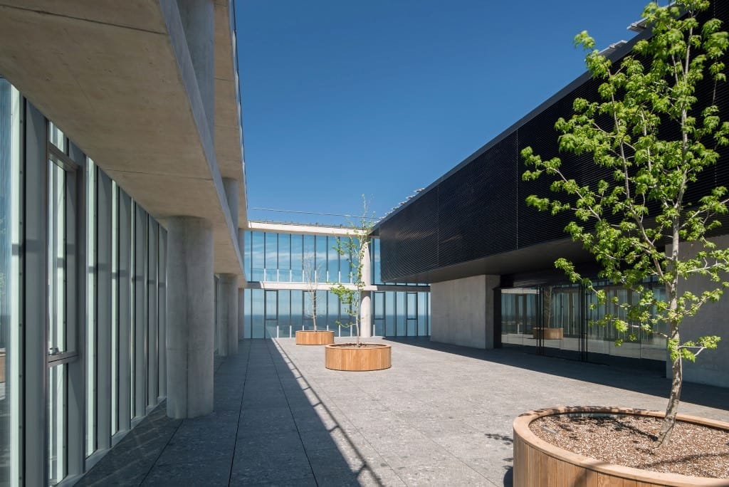 La piel de vidrio del edificio está desarrollada específicamente para este proyecto por el estudio RVA NY. El diseño y desarrollo de los detalles es único para este proyecto para maximizar el control solar y performance del sistema. El sistema de acondicionamiento cuenta con recuperadores de energía tanto en ventilación como acondicionamiento térmico. Los ascensores con Regeneración de Energía y llamada Anticipada, cuentan con sistemas de Generación de energía en el frenado, mejora el tráfico interno, tiempos de espera y consumo de energía.