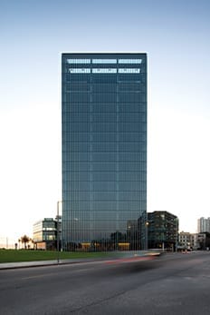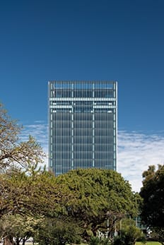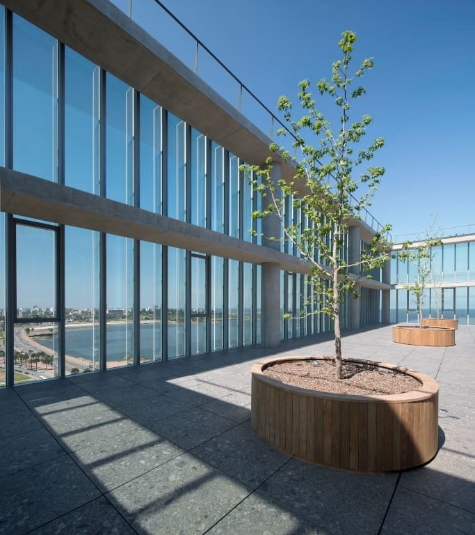 Es la primera obra proyectada por el Arquitecto Rafael Viñoly para Montevideo. Se trata de una torre corporativa que se levanta, imponente, sobre el tramo de la rambla montevideana que une el Barrio Palermo con la Ciudad Vieja; con sus 18 pisos promueve una nueva visión para la costa capitalina. La torre, recientemente inaugurada, propone un nuevo standard para los programas corporativos locales y exhibe el talento de su autor. Al mismo tiempo con su aporte enriquece visualmente la zona, aportando complejidad y plenitud a la trama urbana, entregando a la ciudad un nuevo nivel para el programa corporativo.