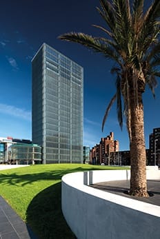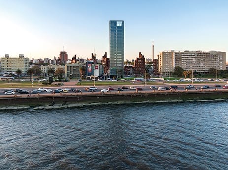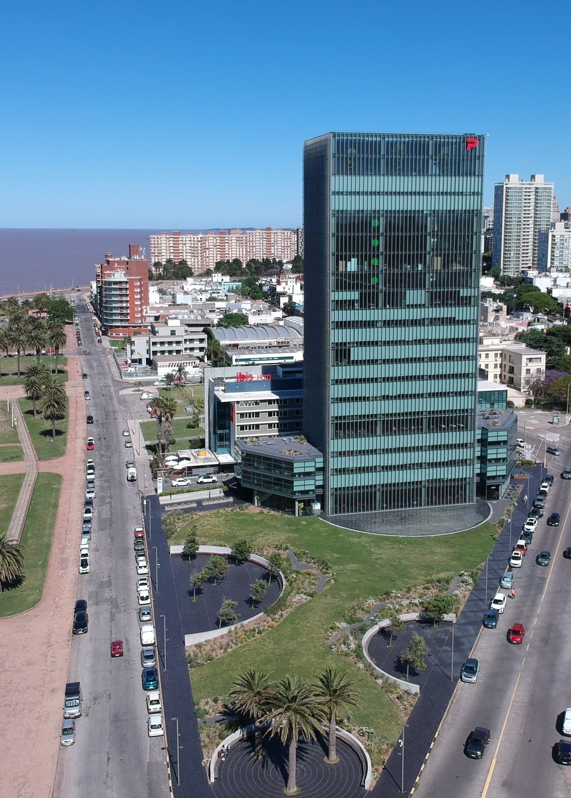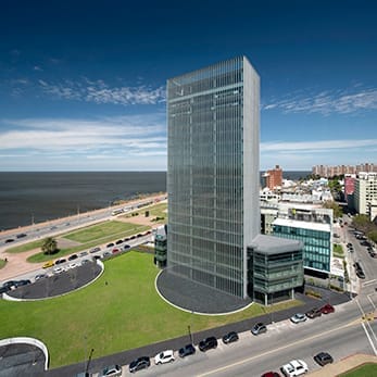 Es la primera obra proyectada por el Arquitecto Rafael Viñoly para Montevideo. Se trata de una torre corporativa que se levanta, imponente, sobre el tramo de la rambla montevideana que une el Barrio Palermo con la Ciudad Vieja; con sus 18 pisos promueve una nueva visión para la costa capitalina. La torre, recientemente inaugurada, propone un nuevo standard para los programas corporativos locales y exhibe el talento de su autor. Al mismo tiempo con su aporte enriquece visualmente la zona, aportando complejidad y plenitud a la trama urbana, entregando a la ciudad un nuevo nivel para el programa corporativo.
