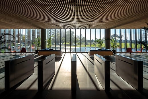 Importa saber que el volumen fue diseñado bajo los mismos estándares que un edificio en Nueva York o Londres. Fue concebido para recibir empresas e instituciones internacionales que tienen gran exigencia respecto de seguridad de vida, sustentabilidad y confort. La obra fue ejecutada siguiendo especificaciones técnicas singulares para nuestro medio, que han permitido que el edificio sea el primero construido en Montevideo con la certificación “LEED GOLD” (Sustentabilidad Medioambiental). También cuenta con el “Arquitecture International Building Code” (Incendio y Seguro de Vida NFPA 72/101).