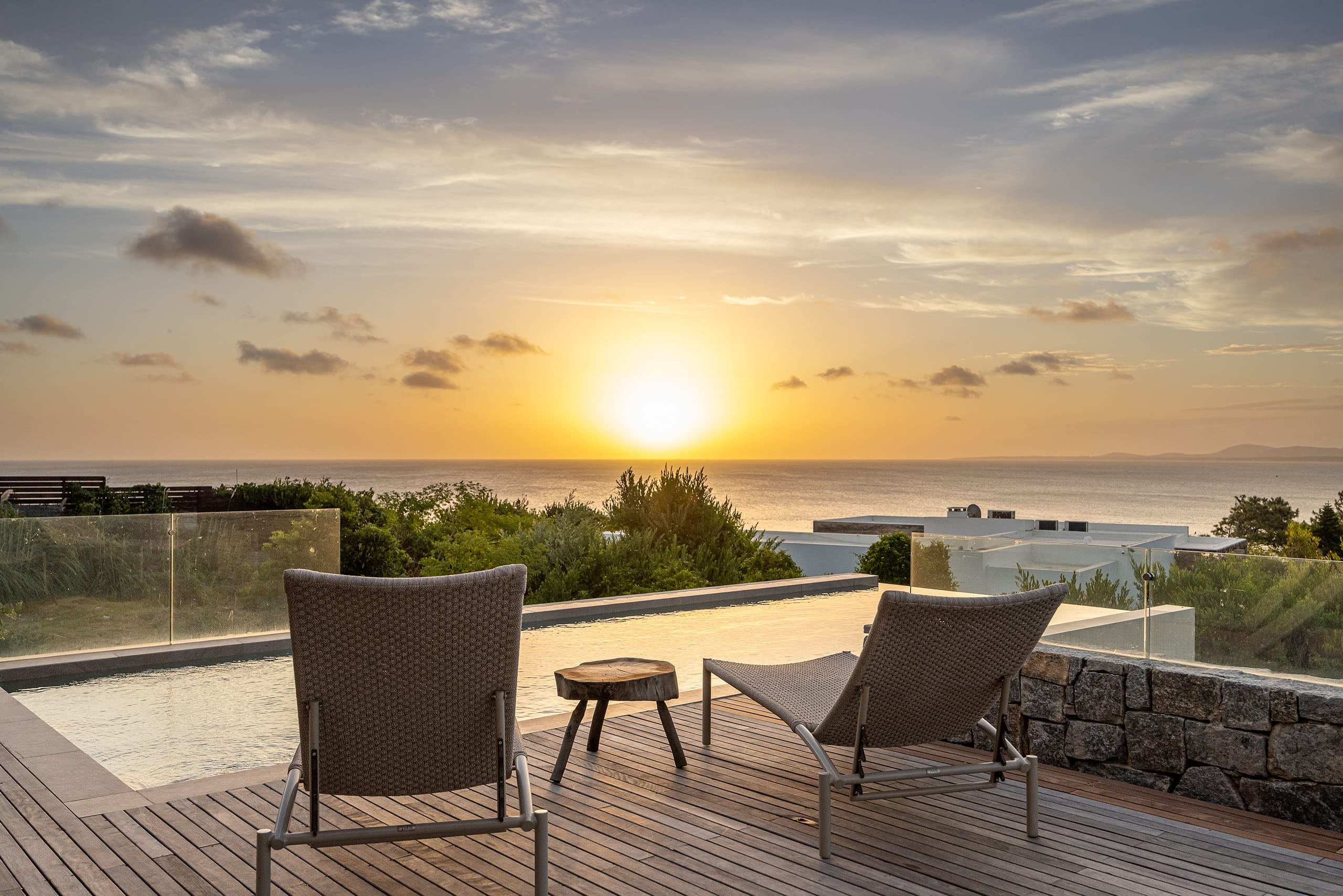 Allí en el sector izquierdo y en línea con la suite principal, se construyó una piscina de borde infinito que posee todas las características y condiciones para ser considerada como inevitable. El equipamiento de la casa es simple y apela al buen gusto de los habitantes, con piezas de diseño adquiridas en subastas y también diseñados a medida.