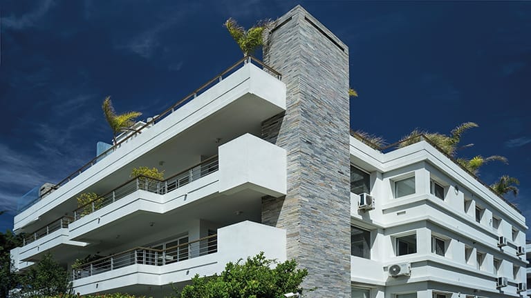 Ubicado sobre el Lago de la Caleta, en un predio de 6.000 m2 se construyeron cuatro bloques bajos de tres y cuatro plantas; conformando así un condominio rodeado de naturaleza con seguridad 24hs. Dos bloques se volcaron hacia el lago y los otros dos bloques hacia la avenida; los bloques “Lago” con apartamentos de 4 dormitorios, y los bloques “Parque” con unidades de 2 y 3 dormitorios. Todos con algo en común; espaciosa recepción de diseño apaisado con estufa a leña y hermosa vista, ya sea al lago o al parque, y amplias terrazas con parrilleros y jardines exclusivos.