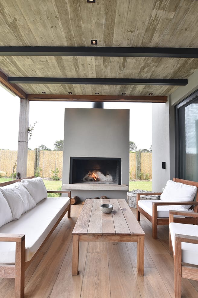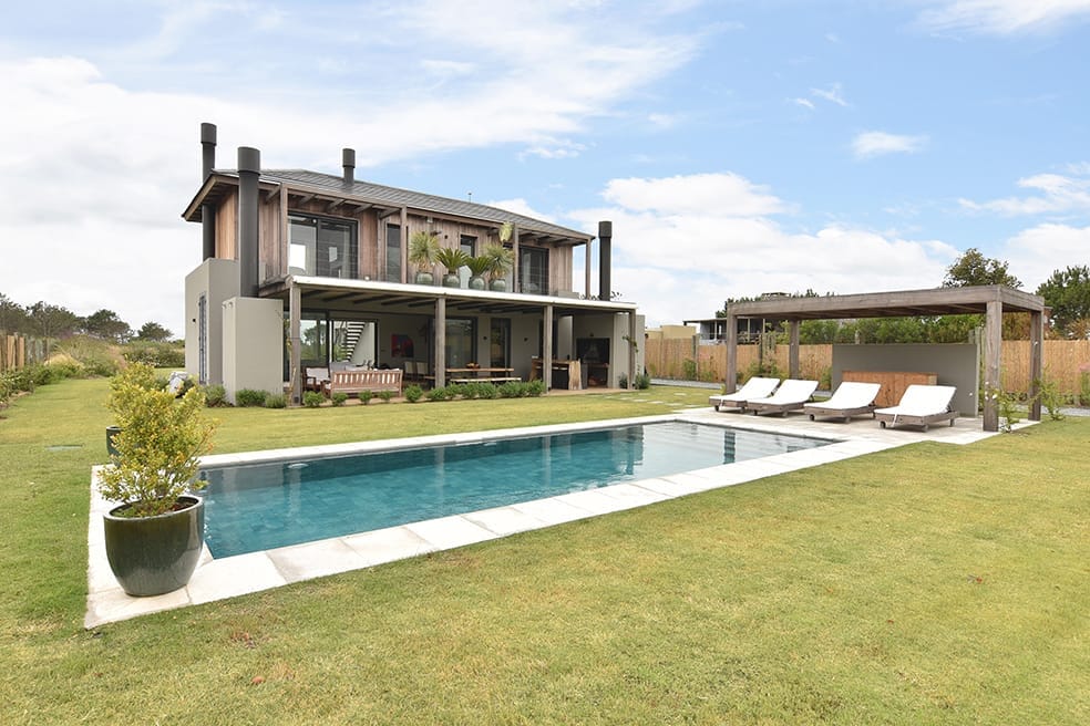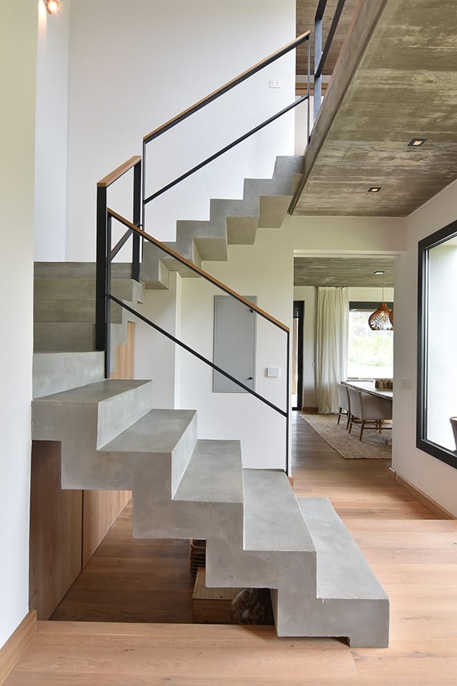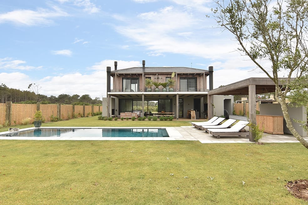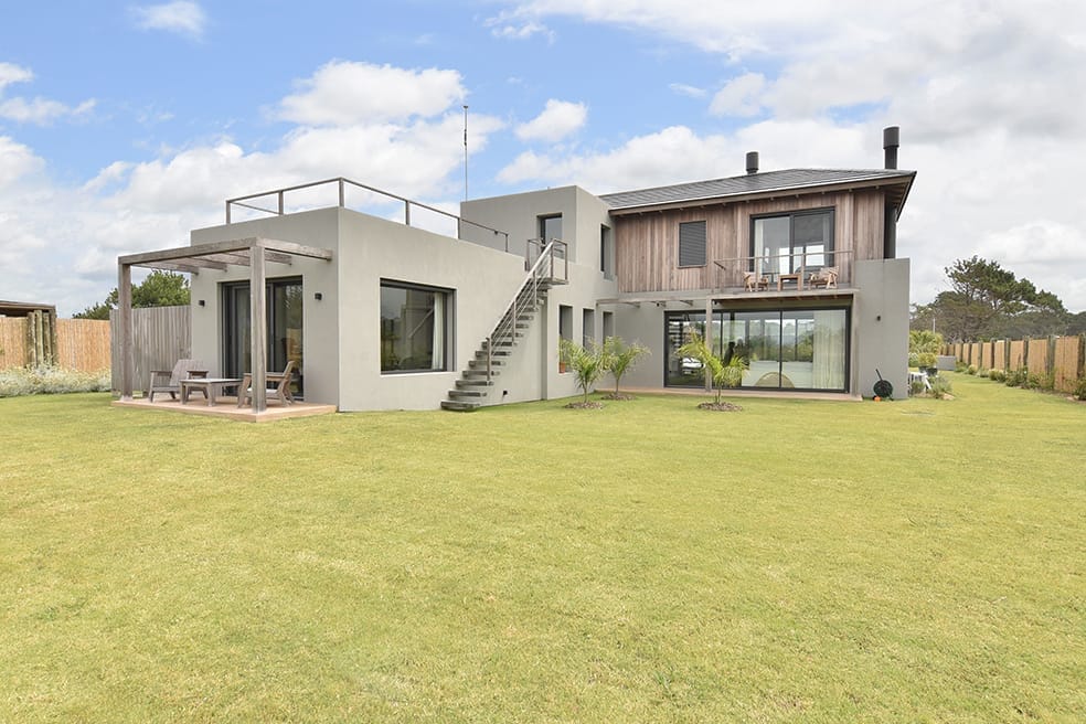Esta casa, ubicada en Arenas de José Ignacio, apela a la utilización de una paleta cromática de materiales naturales que brinda calidez al hormigón visto que sin dudas al interior de los espacios es el material noble protagonista. La madera es sin dudas un elemento trascendente en el rol de buscar el objetivo de calidez proyectado. La forma de la casa surge a partir de los volúmenes que se diferencian en su materialidad y programa. El conjunto volumétrico resuelve el partido con especial naturalidad, los espacios son enmarcados en sus fachadas con una la imagen unitaria que exhibe el cuerpo frontal y determina la planta principal en forma de L. En planta baja sobre la fachada Oeste se disponen los espacios sociales y en planta alta las áreas privadas.