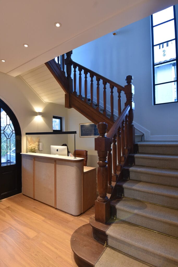 La arquitectura es además un medio de comunicación y desde esa mirada, la casona adquirida por SURES para instalar su sede en Carrasco cuenta muchas cosas acerca del. Barrio y en consecuencia también de su nuevo habitante. Construida en el año 1929, el edificio ocupa una de esas esquinas que burlándose de la compleja tarea urbanizadora supone un frente ochavado que domina el centro de una de las principales articulaciones de la zona, Blanes Viale, Divina Comedia y Carlos Federico Saez. La preocupaciòn de su Director, Javier Lestido, por, restaurarla y dotarla del todo el confort de nuestro tiempo supuso la recuperación de una casona integrada a la memoria colectiva del lugar que establece con meridiana claridad la vocación por el desarrollo a partir de la memoria y la fina lectura de los paisajes construidos. Con todo lo que ello representa cuando refiere a la gestión de un Desarrollador Inmobiliario.
