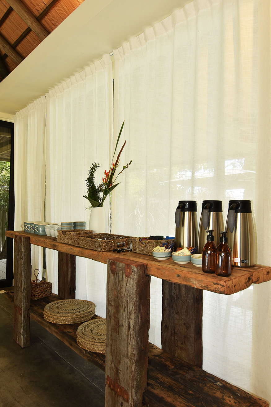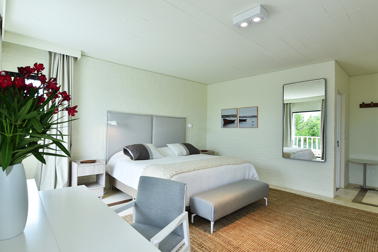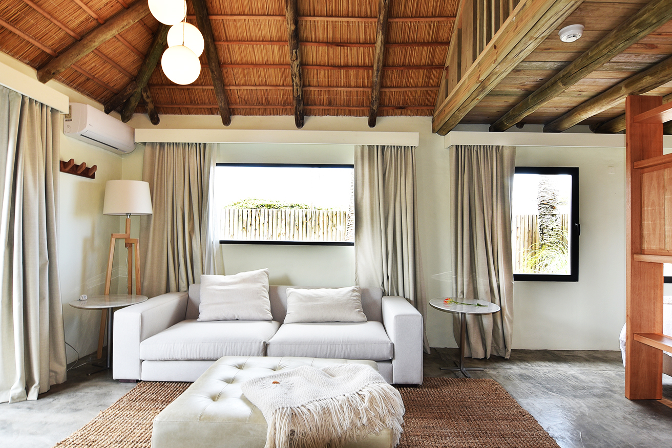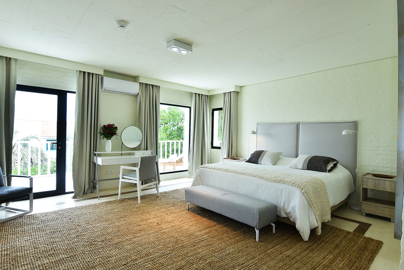 … para el equipamiento apelé a soluciones prácticas. El buen diseño funciona a partir de elementos muy concretos, calidad en los materiales elegidos, calidad en la construcción, compromiso con la comodidad y honestidad en materia de pretensiones. Los somieres son la pieza importante de cada habitación, las mesas de noche, la iluminación y las texturas que elegimos para las cortinas y tapicería se vinculan con el mismo concepto en que asumimos que los huéspedes de la posada solo habrán de conformarse con lo mejor. Como debe ser.