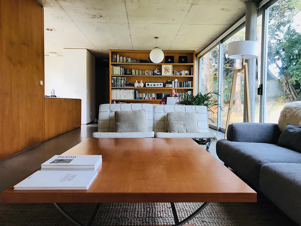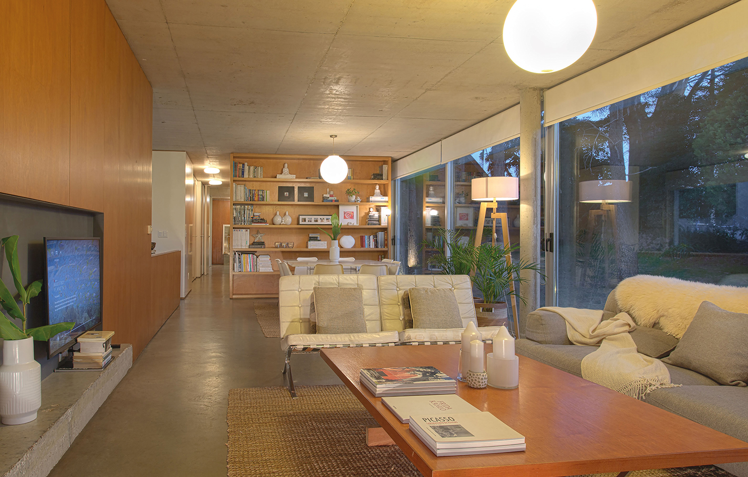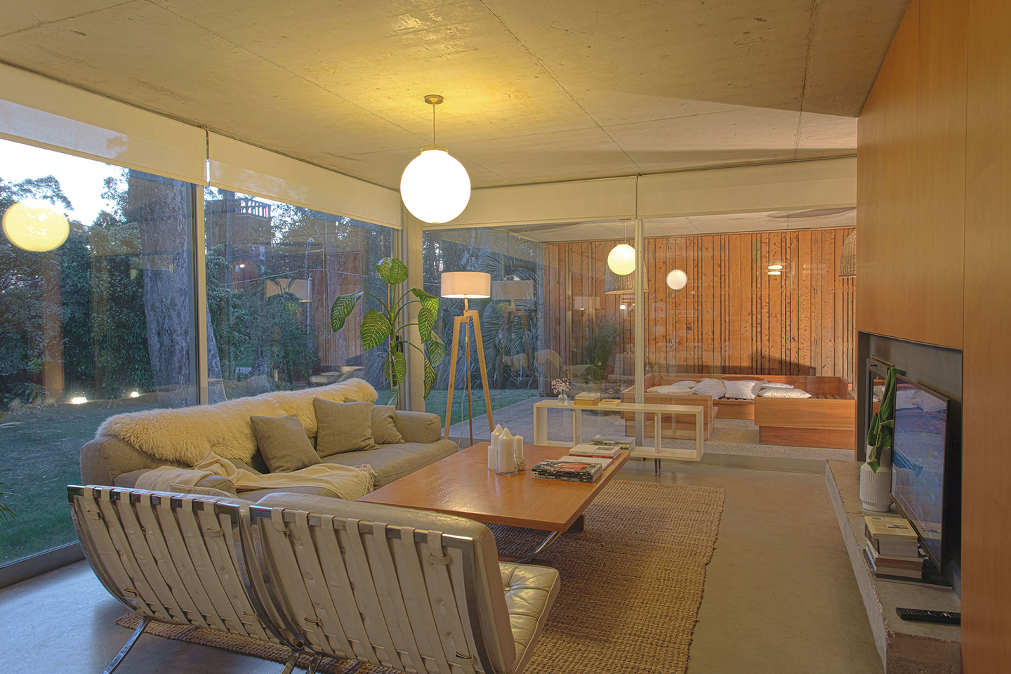 El diseño de Sacchi y Sarando se integra al paisaje del lugar con gestos simples que en el interior replican, manifestando una clara voluntad en la que los habitantes respetan y valoran tanto el vínculo con el entorno como la economía en la utilización del espacio.  La planta es franca, simple y obedece a una lógica de funcionamiento muy concreta. La piel de vidrio que cierra la línea convirtiéndola en caja, resuelve espacios habitables donde la luz natural es plena. Las paredes y pavimentos interiores fueron revestidos con madera, en un juego en el que la laca y el avado natural se alternan, como el trabajo del hormigón en la cinta exterior, donde las texturas también alternan, entre lo opaco y lo rugoso.