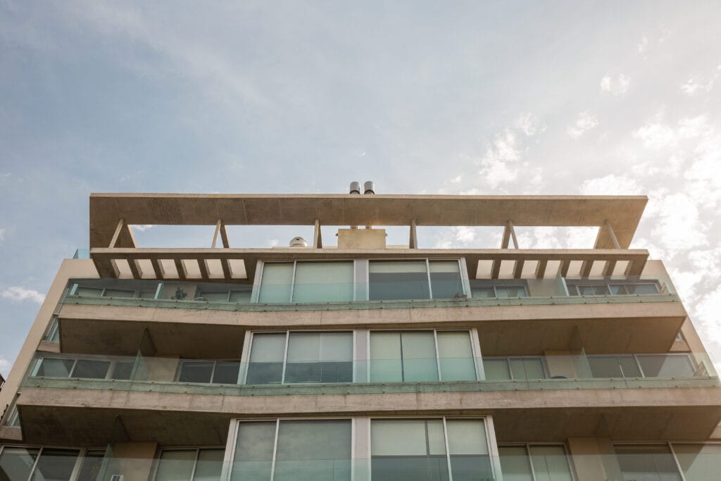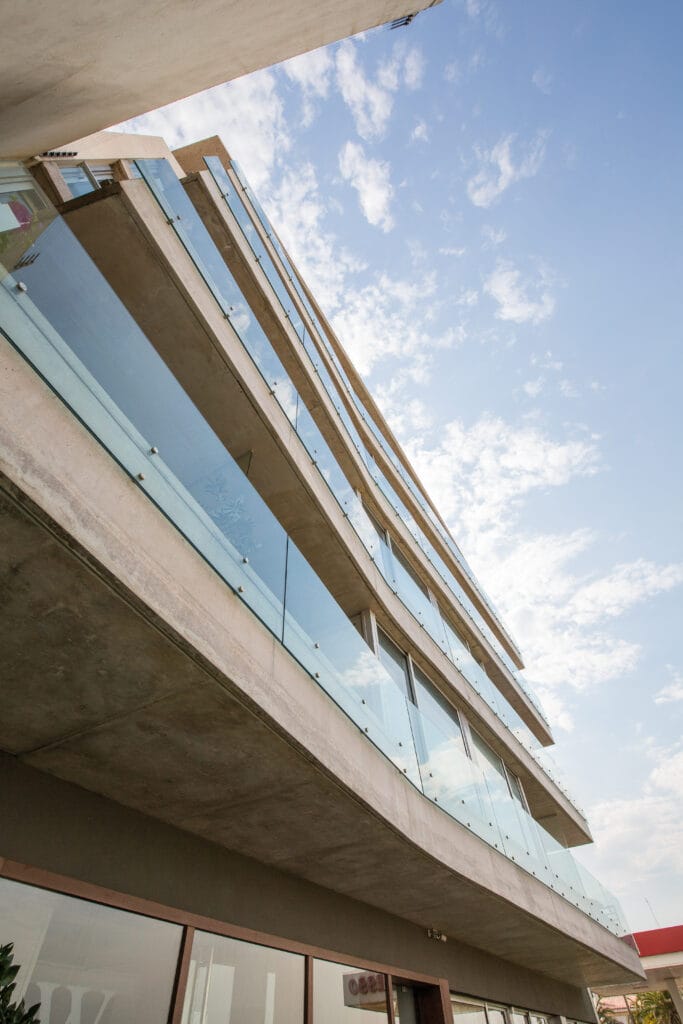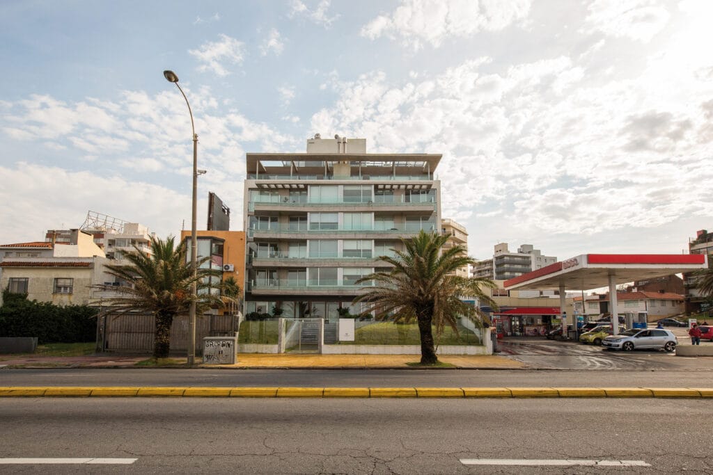 Ubicado en una parcela medianera, sobre la Rambla O ́Higgins y la Calle Orinoco en Malvín, el edificio se erige como una interesante propuesta residencial. Se trata de un edificio de mediana altura, con una vista privilegiada sobre la costa y con una importante densidad de ocupación: treinta unidades de apartamentos distribuidos en seis niveles, con áreas intermedias y prácticos esquemas de ocupación. En su planta baja, la edificación posee acceso peatonal por los dos frentes. Una vez dentro, el edificio se distribuye verticalmente de la siguiente manera: en planta baja, recepción y cuatro unidades de apartamentos, mono ambientes y de 1 y 2 dormitorios; del nivel 1 al 4, seis unidades de apartamentos de 1 y 2 dormitorios por piso; en el nivel 5, dos unidades de penthouses de 1 y 2 dormitorios, y en el nivel 6, un área común con terraza, solárium, jacuzzi y parrillero. Se suma un sub suelo, donde se encuentran el estacionamiento y el área de servicios comunes. El volumen se define a partir de una envolvente de concreto que deja abierta la fachada principal. En medio de esta se despliega una secuencia de losas de concreto sobre la cual toman lugar los cinco niveles de apartamentos. En el eje de esta fachada, sobresale un volumen central que contiene los apartamentos de un dormitorio con orientación sur. Como remate la última losa se des materializa transformándose en un alero corrido y tamizando la luz solar sobre las terrazas sur de los penthouses. Los elementos principales de esta fachada son el concreto en vista, las ventanas panorámicas, los antepechos en vidrio, y los detalles en aluminio. La fachada posterior, mucho más conservadora, se configura a partir de un bloque central amplio, que sobresale respecto al plano de fachada del volumen principal. Allí los distintos niveles se hacen presentes a manera de franjas horizontales. Esta fachada se construye a partir de paneles de revestimiento, revoques pintados, concreto en vista, ventanas amplias, detalles y antepechos en aluminio. El edificio proyecta contemporaneidad y sofisticación en todos sus ángulos, generando en cada uno de sus ambientes comunes una distintiva atmósfera vanguardista.