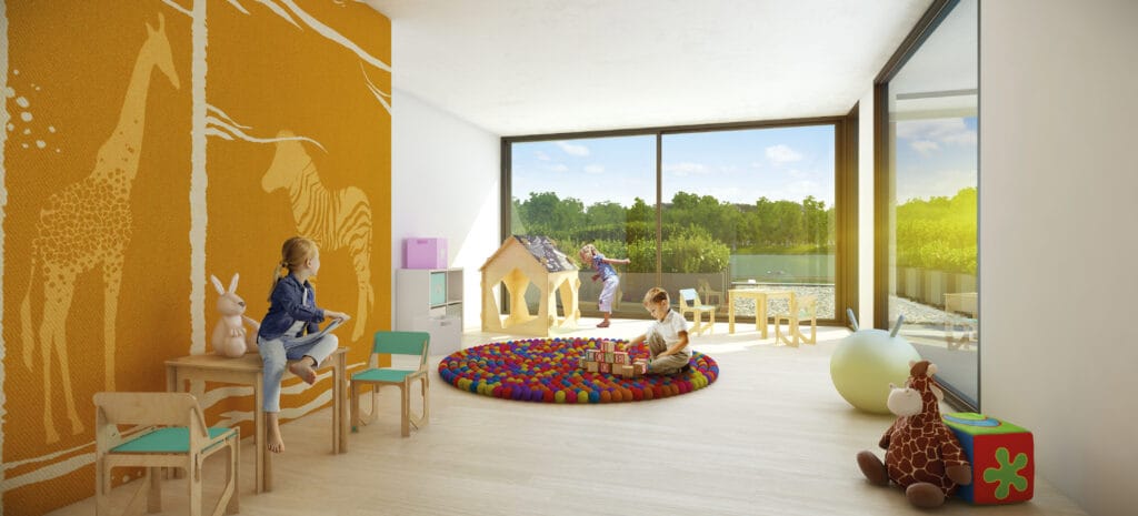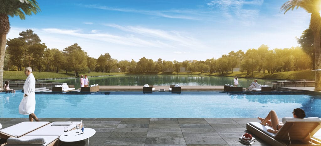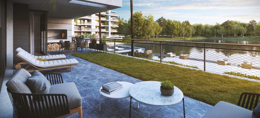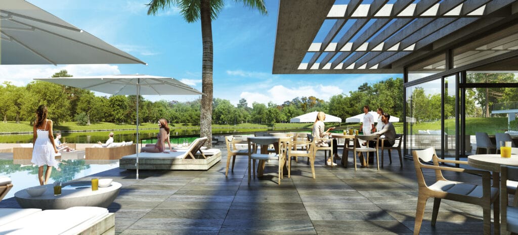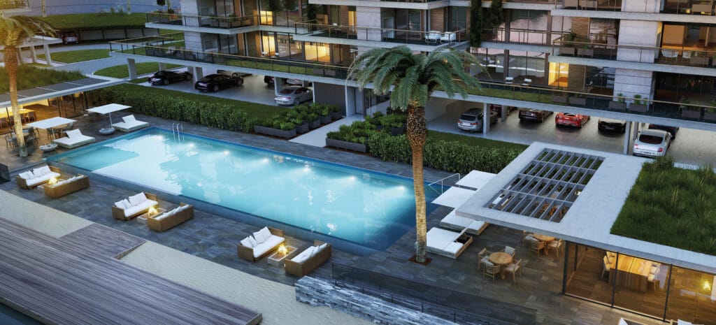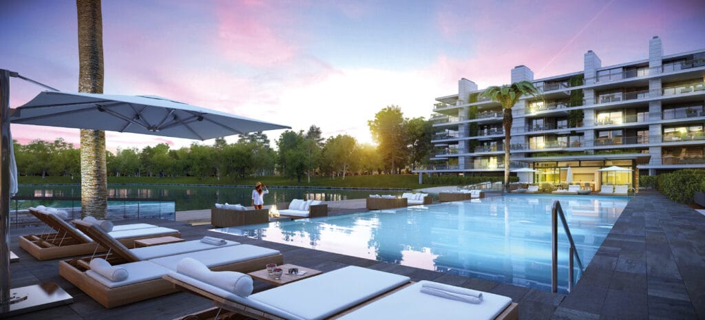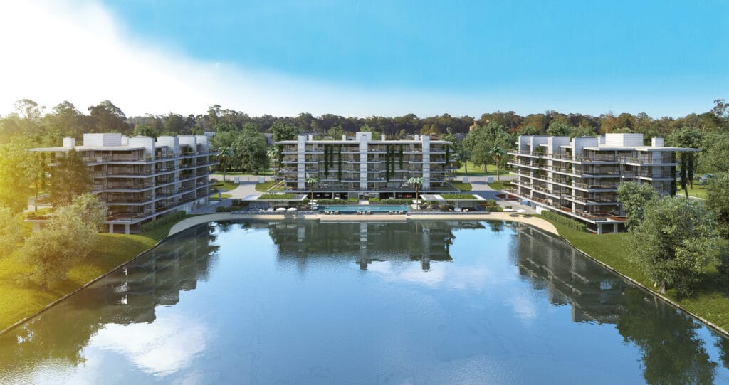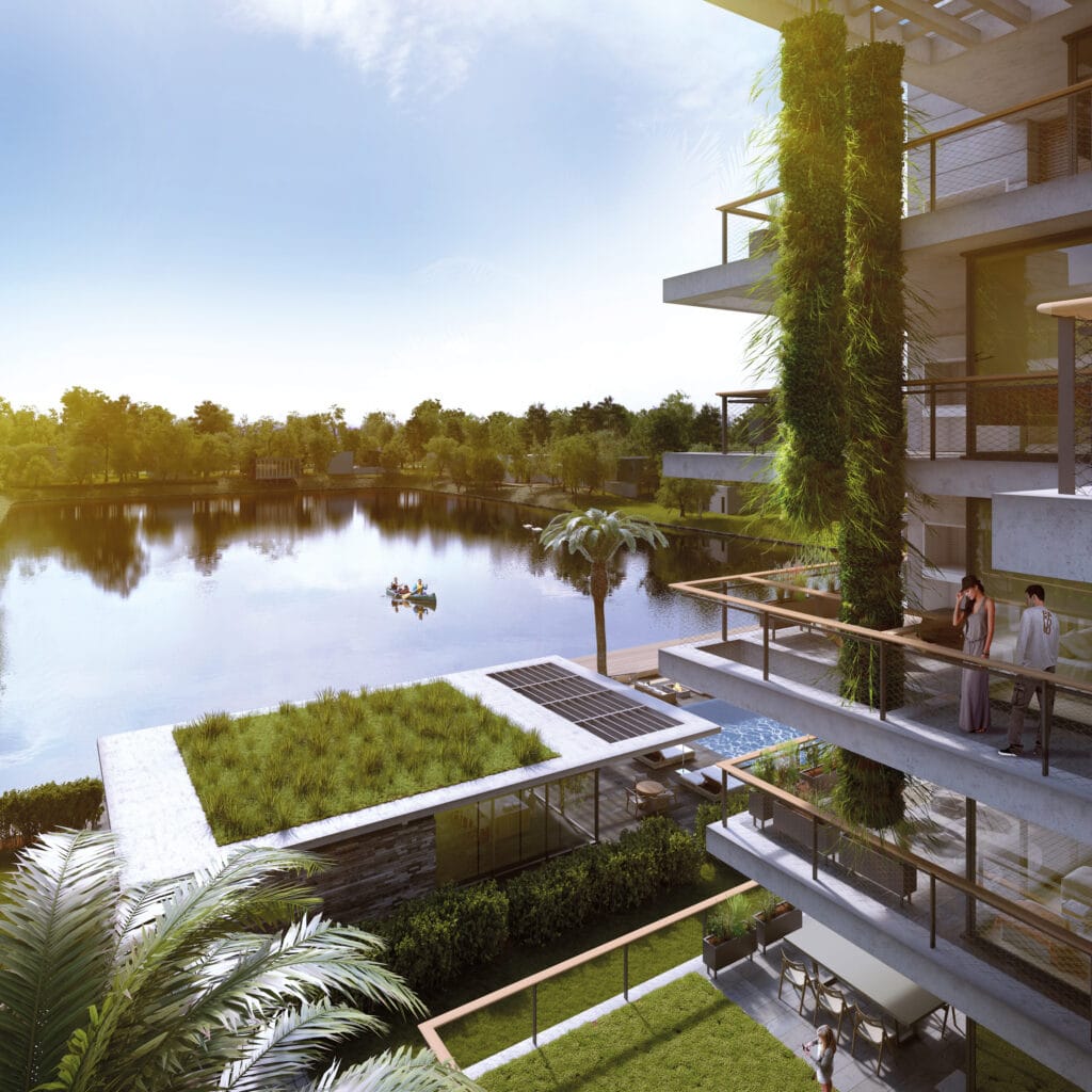 La primer etapa del proyecto incluye el edificio central, el edificio de amenities y sus espacios exteriores: jardinería, pavimentación exterior, caminería, piscina, muelle y pérgola en el agua, estacionamientos de cortesía y las obras comenzarán el próximo mes de junio.