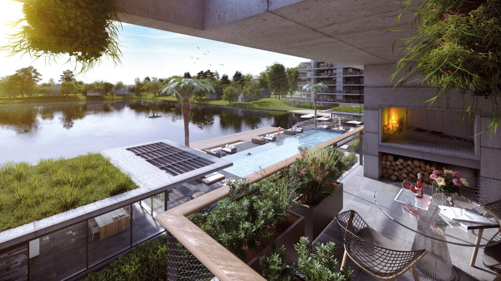“… cuando comenzamos a conversar sobre el proyecto WELL con Juan Antonio Damiani, encontré a un Desarrollador muy consustanciado con el lugar y con ideas muy claras acerca de lo que deseaba construir. La sintonía fue plena. Al mismo tiempo yo conocía la zona perfectamente, en esa misma manzana, del otro lado del que ahora ocupamos con nuestro proyecto, funcionaba una cancha de baby futbol a la que regularmente llevaba a mis hijos… “ nos comenta el Arquitecto Carlos Ponce de León mientras caminamos por el lugar. “…el espíritu del lugar es muy fuerte. Es una urbanización que se ha desarrollado con mucho carácter y con un nivel singularmente parejo. Allí prima la paz, el sosiego y el placer de vivir frente a las lagunas. Con nuestro proyecto debíamos recoger todo ello y aportar algo más. A partir de esas premisas comenzamos a dibujar. Nuestro trabajo se define a partir de una gran preocupación por el aspecto atemporal de la arquitectura, aquel que trasciende la moda. Siempre queremos producir una arquitectura que responda a la cultura local en cuanto a las variaciones regionales en el clima y el paisaje. La arquitectura es tanto una experiencia interior como una exterior. La mejor arquitectura proviene de una síntesis de todos los elementos que confluyen al mismo tiempo en un edificio: desde su relación con el paisaje urbano o el horizonte hasta la estructura que comprime por separado el horizonte, la estructura que lo sostiene, los diferentes servicios que le permiten trabajar. La sustentabilidad del edificio, los materiales utilizados, el carácter de los espacios, el uso de la luz y la sombra, el simbolismo de la forma y la forma en que señala su presencia en la ciudad o en el campo….”