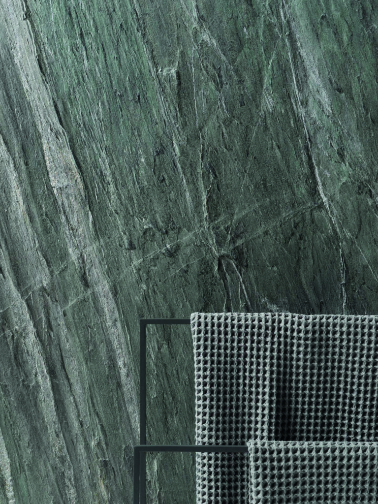 La serie reúne nueve variantes de pizarra natural, pensadas para aplicaciones en interiores y exteriores, desde muros y paneles hasta baños, duchas o piezas de mobiliario. Entre los acabados disponibles destaca Graphite, una referencia de tonos grises profundos que aporta sobriedad y profundidad visual, potenciando el carácter contemporáneo del material.