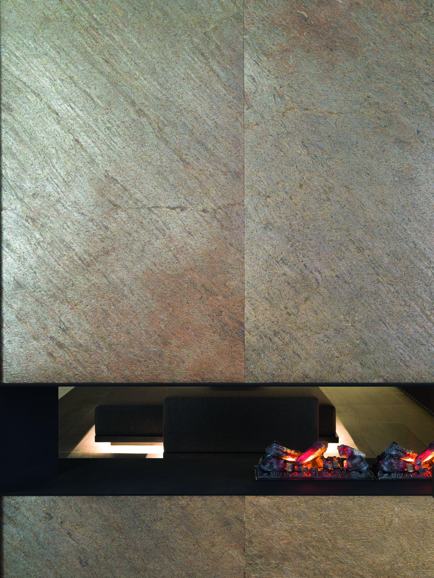 La serie reúne nueve variantes de pizarra natural, pensadas para aplicaciones en interiores y exteriores, desde muros y paneles hasta baños, duchas o piezas de mobiliario. Entre los acabados disponibles destaca Graphite, una referencia de tonos grises profundos que aporta sobriedad y profundidad visual, potenciando el carácter contemporáneo del material.