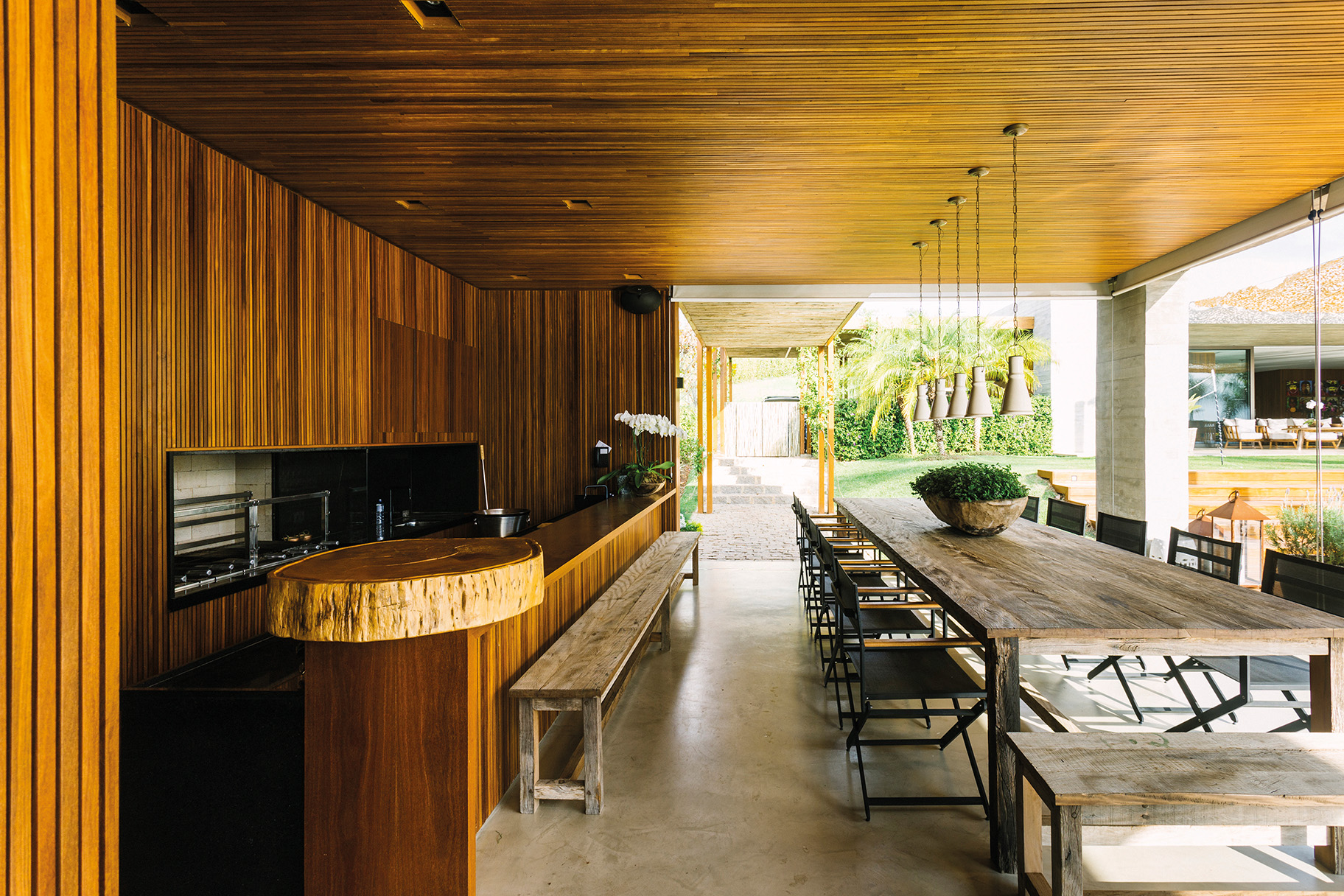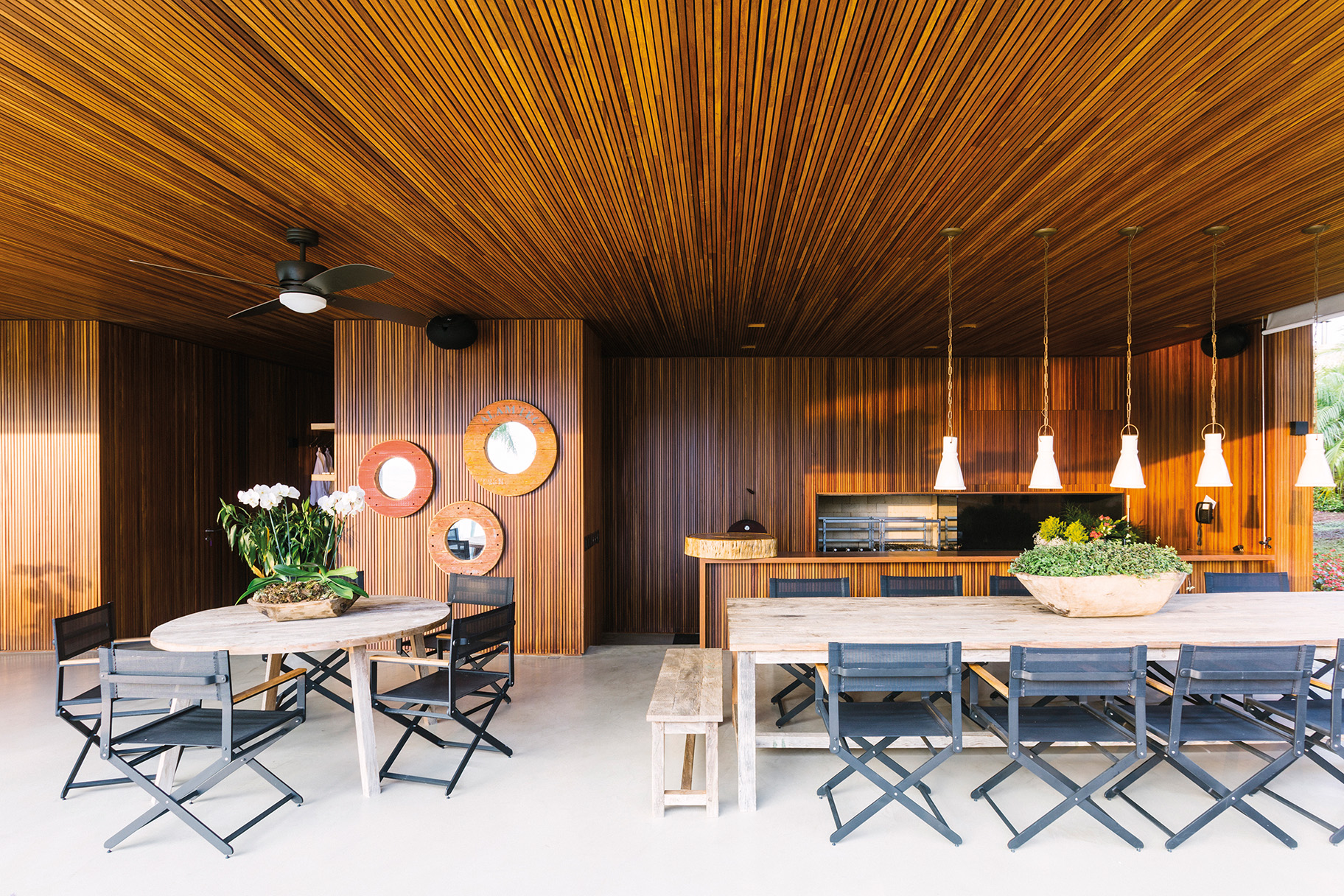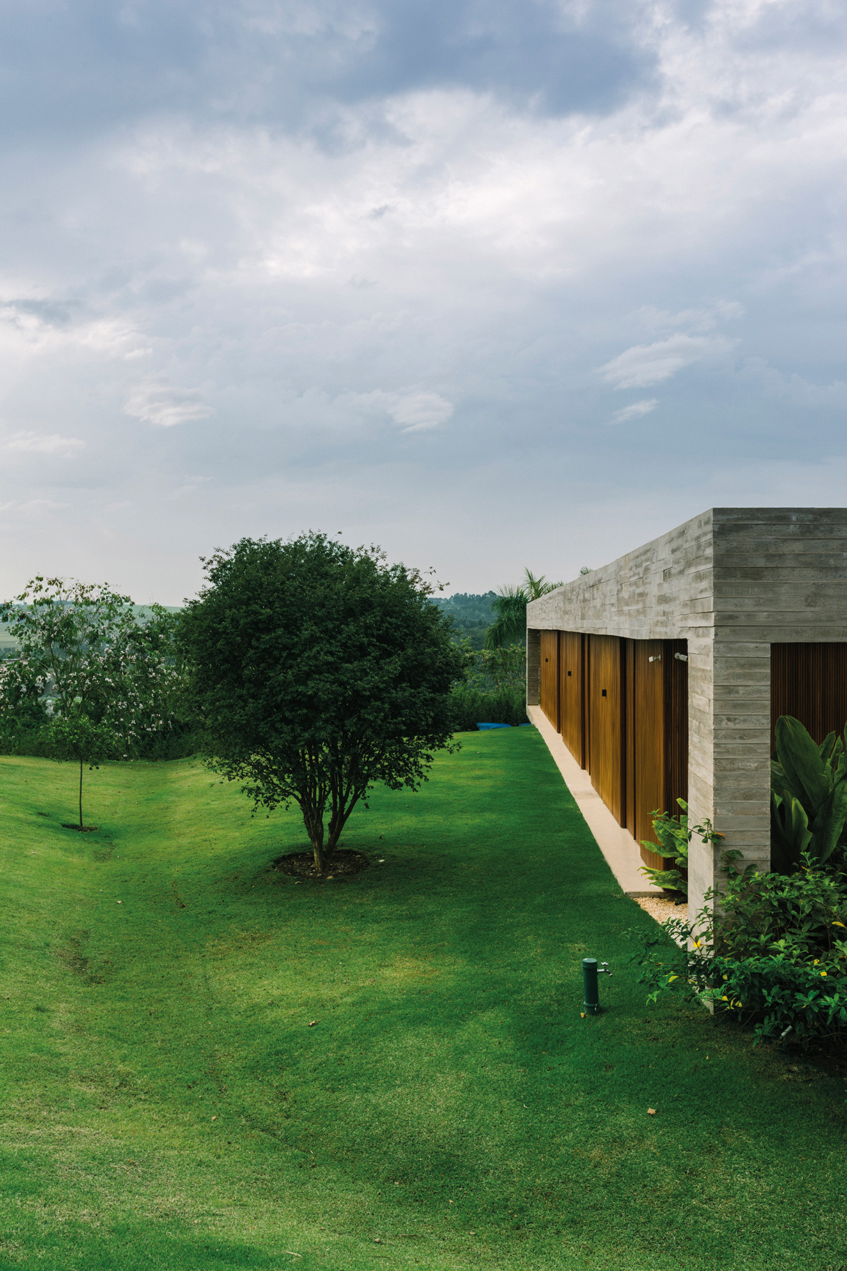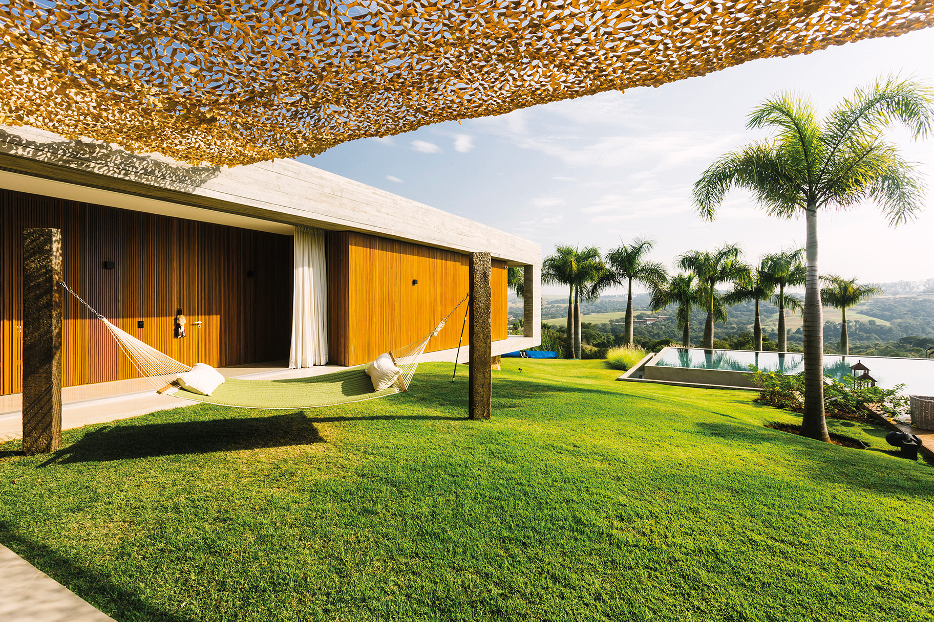 El vigor del paisaje en Porto Feliz, la localidad en la cual se ubica la urbanización que contiene a esta casa, es increíble. Por esa razón la casa y el equipamiento se abren hacia los jardines exteriores que regalan numerosos tonos de verde y horizontes siempre limpios.