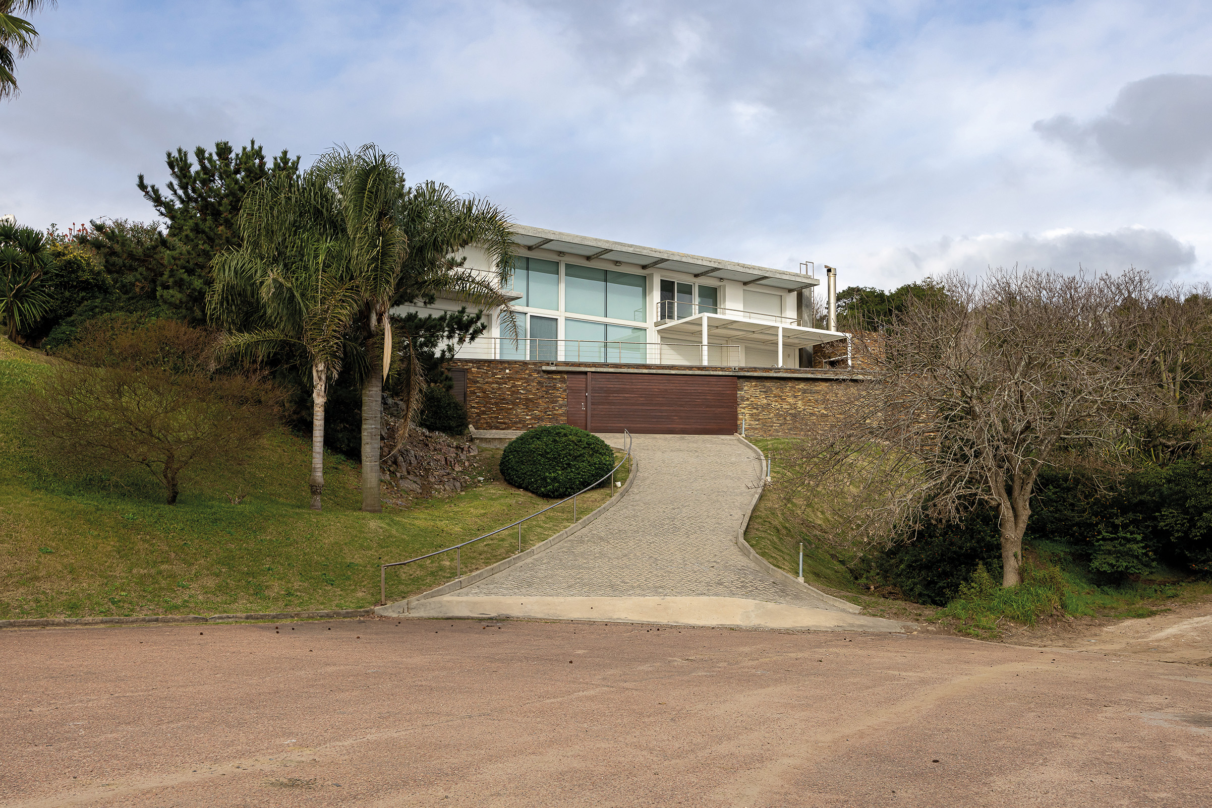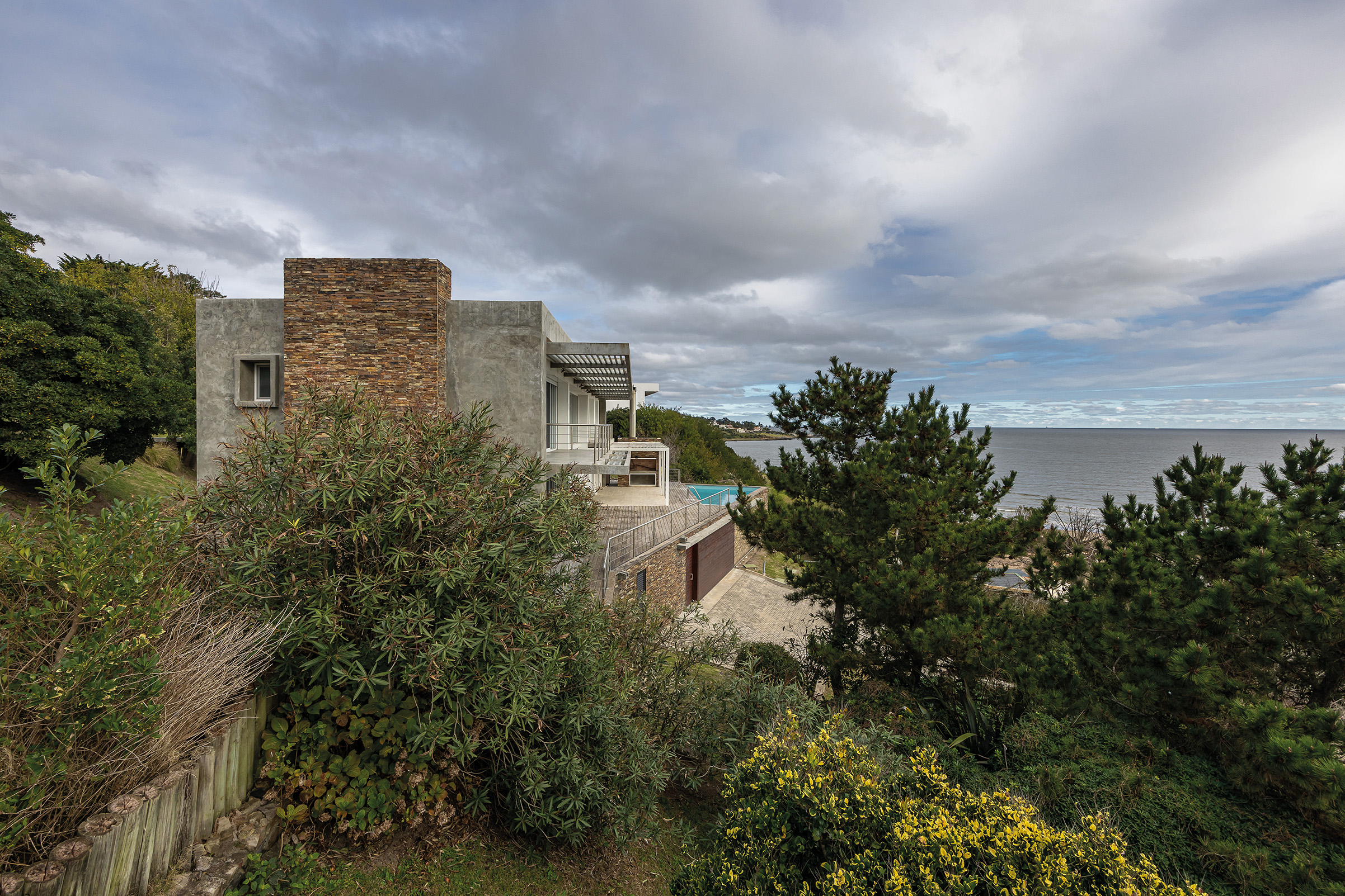 La fachada posterior mantiene la coherencia con el diseño del resto de la casa. Una sala de estar exterior se proyecta sobre la piedra y se acompaña de una piscina sin fin que extiende sus vistas hacia el océano, creando un efecto visual de continuidad con el mar. En el subsuelo, un amplio garaje con capacidad para varios autos, la sala de máquinas y una serie de dormitorios de servicio completan la disposición funcional de la casa.