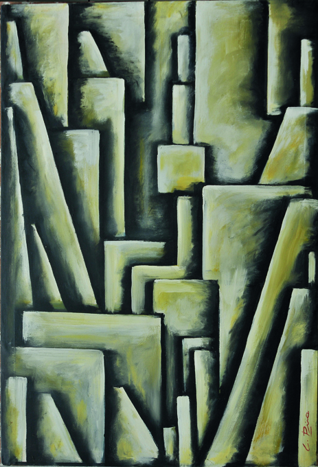 El constructivismo aparece en mí a partir de la visualización de una obra del artista español Manuel Pailós. Mi obra no respeta una de las reglas de oro del constructivismo que tiene que ver con las proporciones y el número áureo. En la última etapa de Torres él elimina esa obsesión y rigidez del número áureo, y de alguna manera aquello abrigó la culpa que en mi despertaba no respetar aquella regla. No uso muchas herramientas porque por momentos siento que entorpecen mi trabajo. Me tranquilizó saber que lo que hago es un constructivismo moderno, moderno por quebrar una de sus reglas fundamentales. Uso el ojo, es mi mejor herramienta. Tengo el concepto de que el arte tiene que ser completamente libre: tanto en su creación como en su técnica e historia. Uno no debe intentar seguir una regla sino ser libre, así es como se genera la obra de arte, libre, que sale de adentro; aunque claro está, es importante conocer y desarrollar las distintas técnicas que en definitiva brindan y dotan de herramientas y opciones al momento de crear. Hoy pinto con espátula y utilizo enduido con cola vinílica y pintura de piso. Se forma una pasta muy rígida que permite generar la textura que se puede ver en mis obras actuales. Siempre usé espátula como herramienta porque me permite ese gesto con relieve, que al tacto genera esa sensación arenosa. Frente al óleo, el enduido tiene un tiempo de secado mucho más rápido, con lo que se puede crear una obra con relieve en distintos tonos sin que se mezcle (el óleo, si lo utilizas empastado, termina mezclando los colores). Le da movimiento a la pieza, mas allá de la pincelada que le puede generar un ruido, el enduido permite la textura, la tridimensionalidad. Esto es un camino que estoy investigando y perfeccionando”.