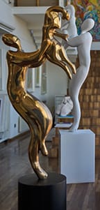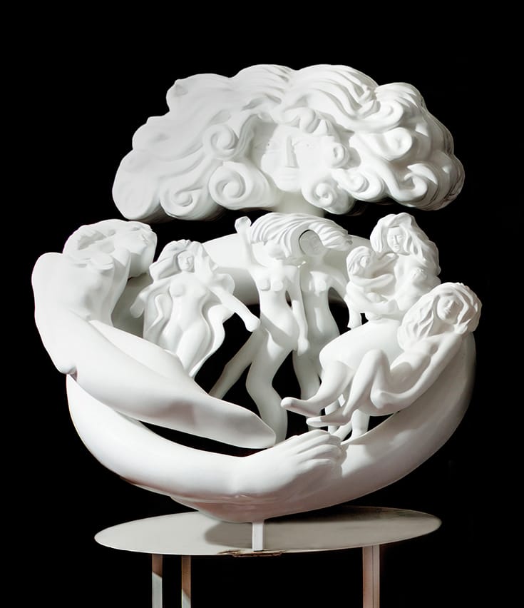 DA: ¿Como surgió esto de hacer esculturas? … la verdad es que quería que los personajes de las pinturas estuvieran más cercanos a mí, en todas sus dimensiones… como algo lúdico. Todas mis esculturas tienen su origen en mis pinturas. A diferencia de las pinturas, que nacen del inconsciente y no son guiadas por la razón, la escultura surge de pinturas que yo escojo para transmitir un mensaje o visibilizar un sentir.