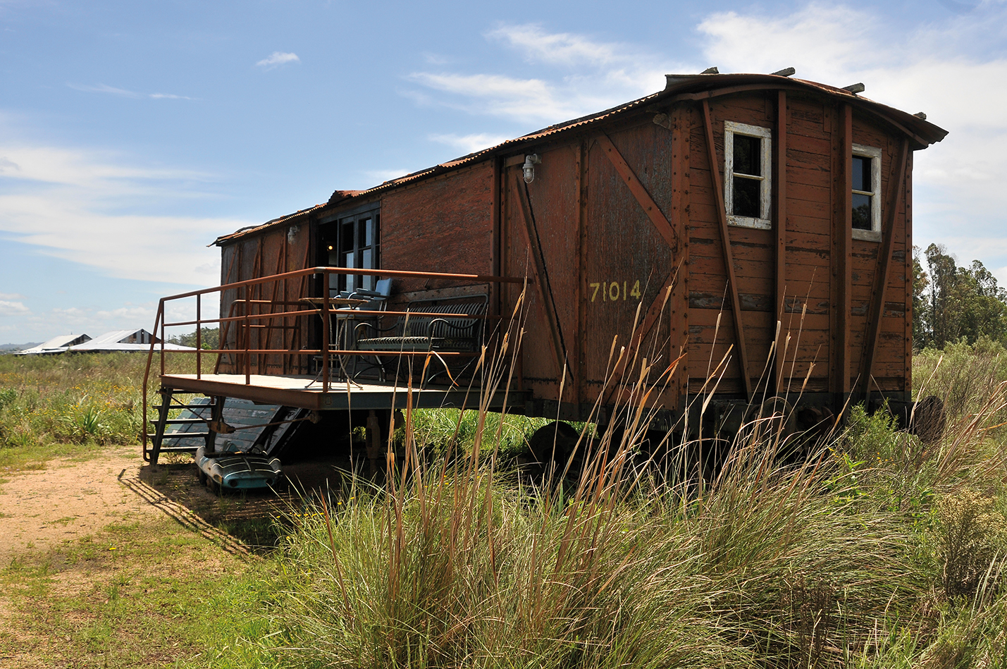 Ante la necesidad de disponer de una casa de huéspedes, Aarón Hojman acondicionó un antiguo vagón de carga americano de los años cincuenta. El resultado es extraordinario: como perdido en el tiempo y el espacio, de alguna manera, el vagón emula aquella famosa frase que da cuenta de la gallardía de aquellas cosas que no van a ninguna parte. Fiel a su estilo, Hojman buscó en todo momento respetar la historia del objeto con el que se disponía a trabajar. El antiguo vagón, como muchas cosas en su vida, llegó de casualidad y sin pedir permiso; desde el comienzo la idea fue respetar la historia del vagón, que alguna vez supo oficiar como vehículo ferroviario utilizado para el transporte de cargas, y acondicionarlo al nuevo mundo con el fin de agasajar huéspedes. La idea de movimiento se presenta casi por defecto, y el desafío resultó una elegante aventura.